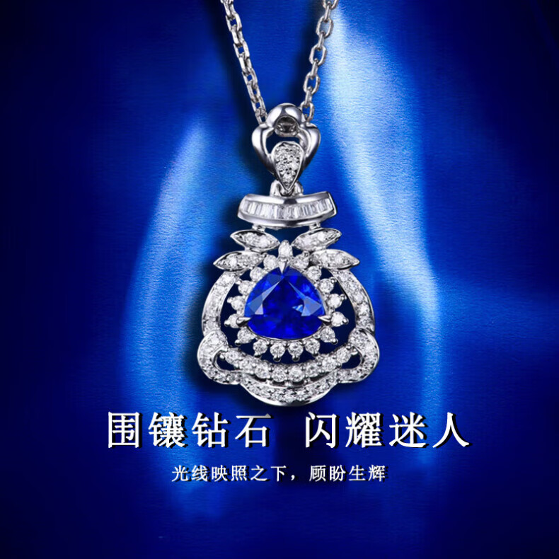 HEEKAIYI Sapphire Necklace for Women Royal Blue 18k Gold Diamond Pendant Chinese Valentine's Day Birthday Gift for Wife and Girlfriend Selected 1 Carat/Royal Blue 1 Carat Contains 18k Gold Chain