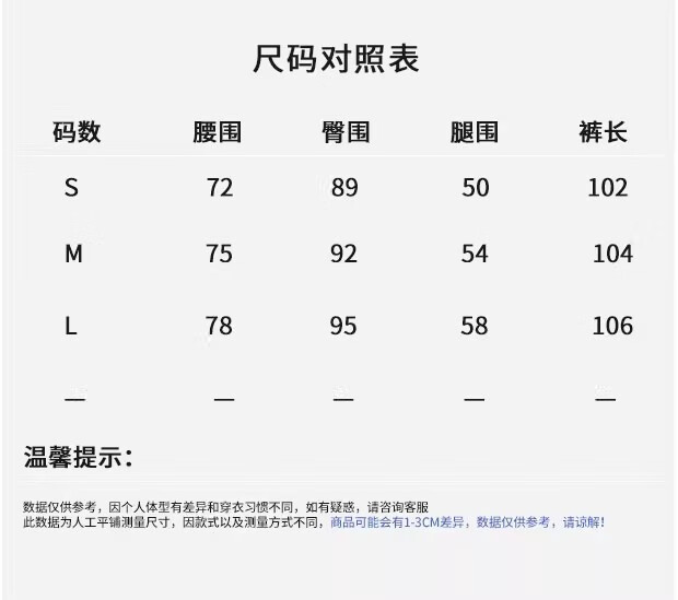 Outseam (cm) 99 cm 101.5 cm 104 cm 106.5 cm 109 cm
