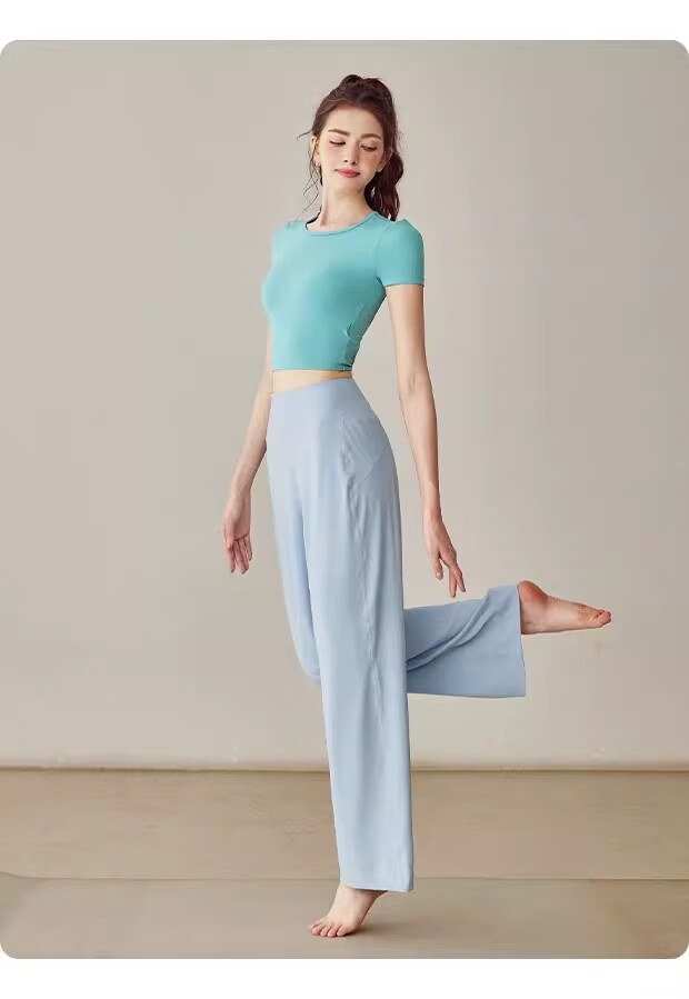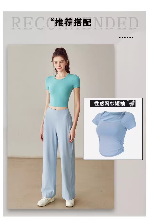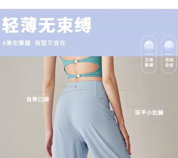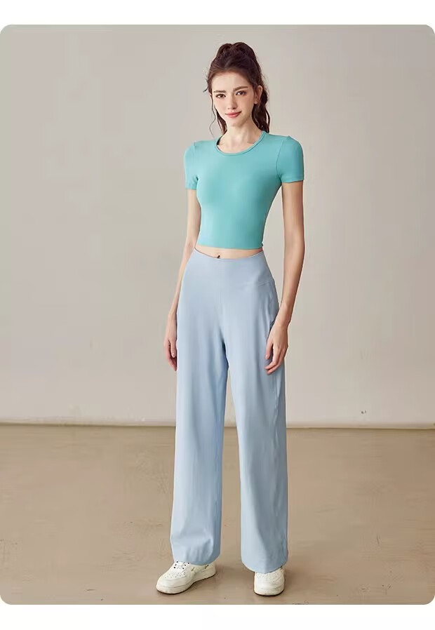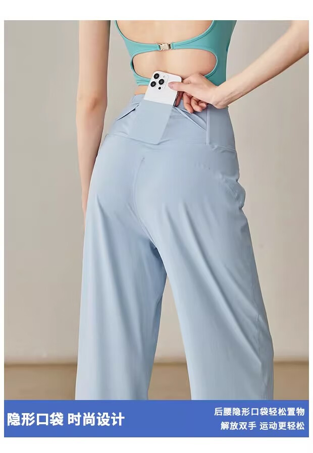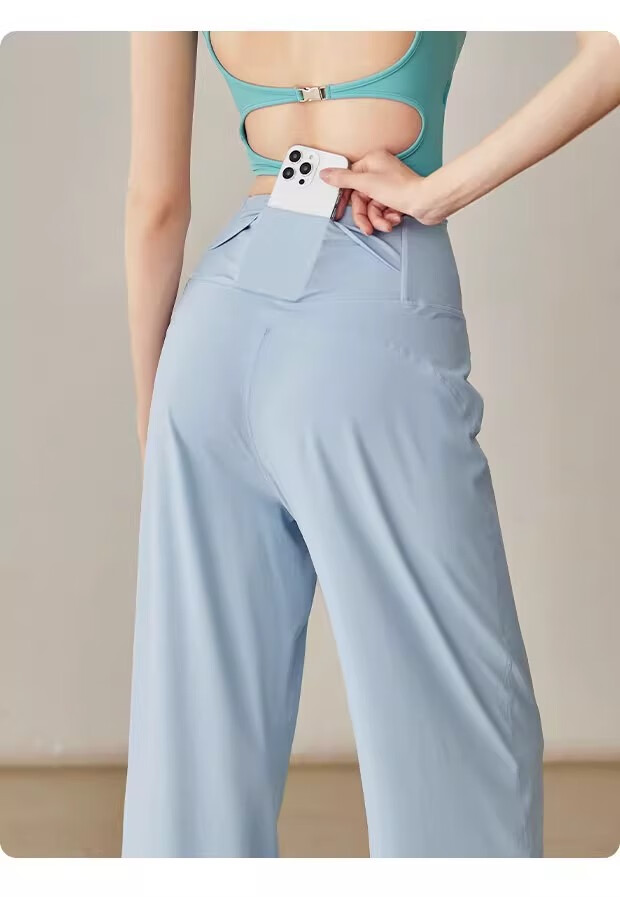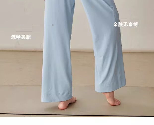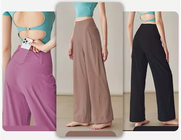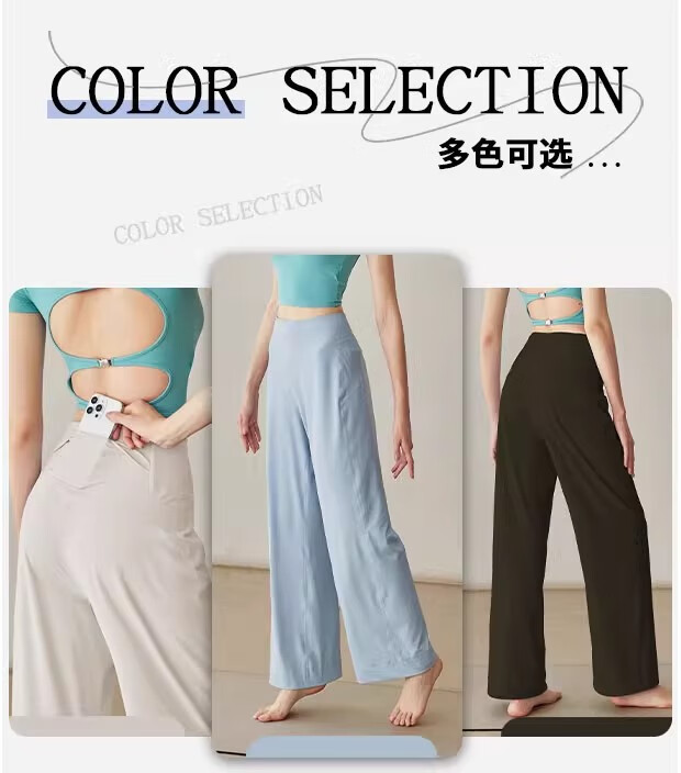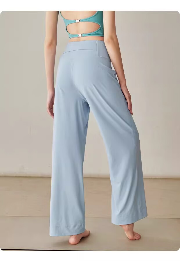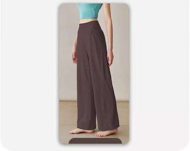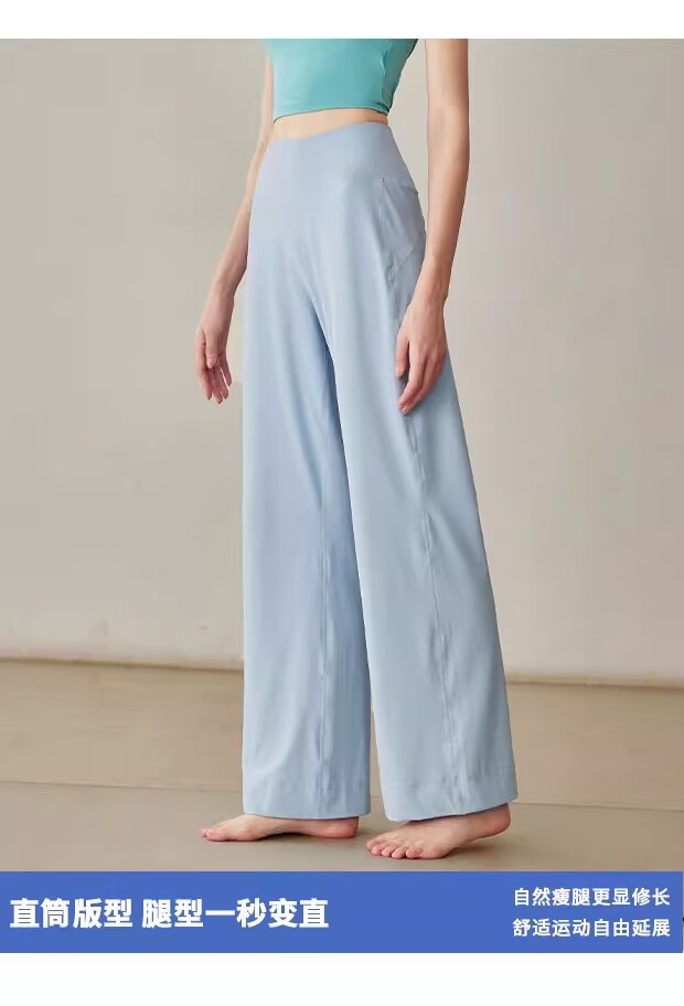 LULU CENTURY Loose Straight Yoga Pants Women's High Waist Slimming Sports Pants Flare Pants Professional Pilates Fitness Pants Wild Rose L