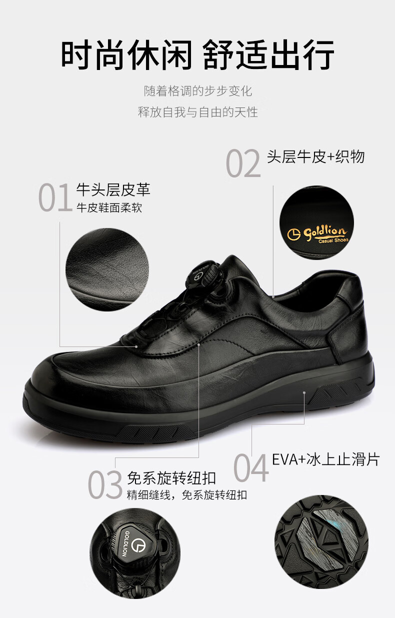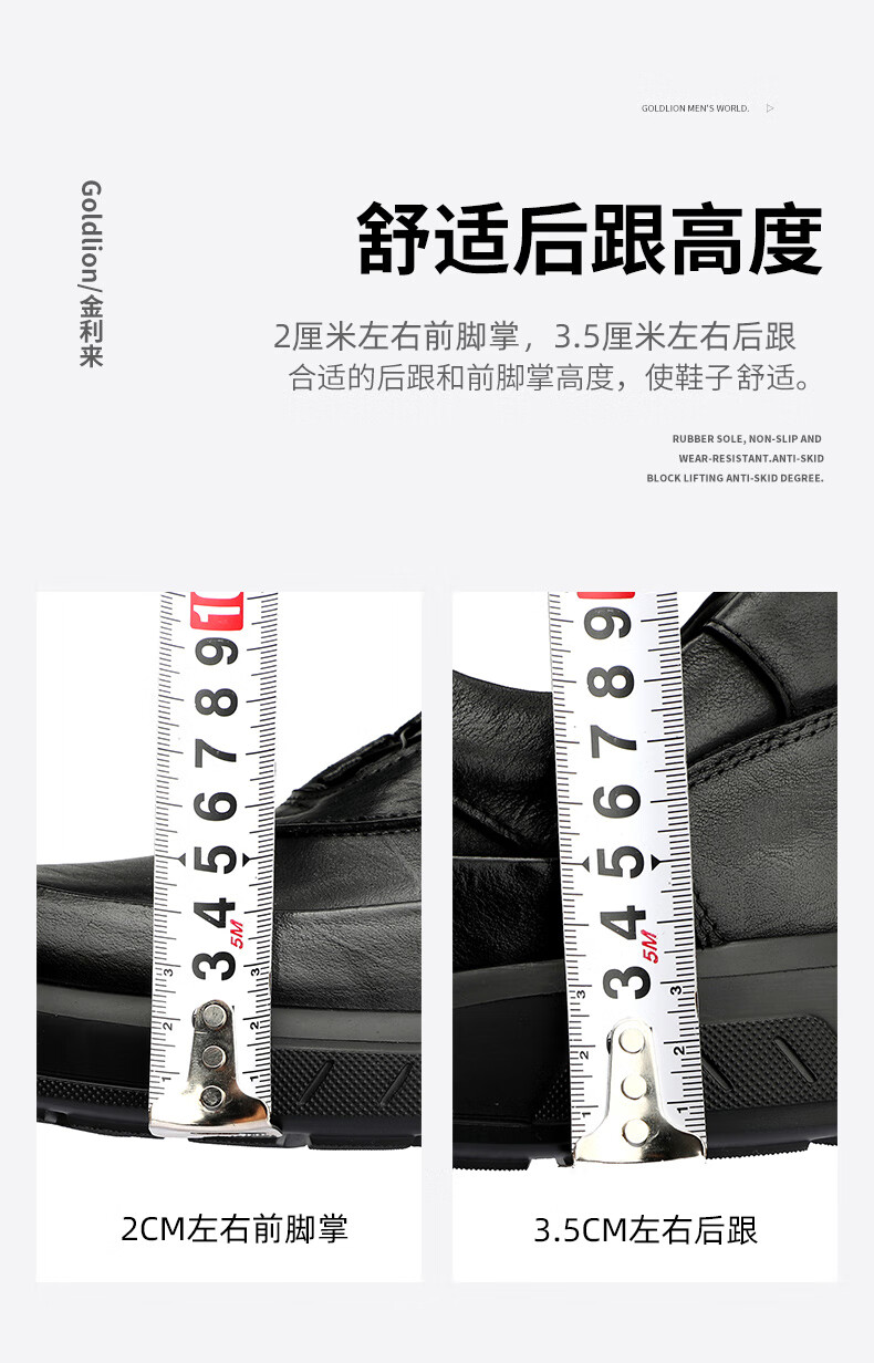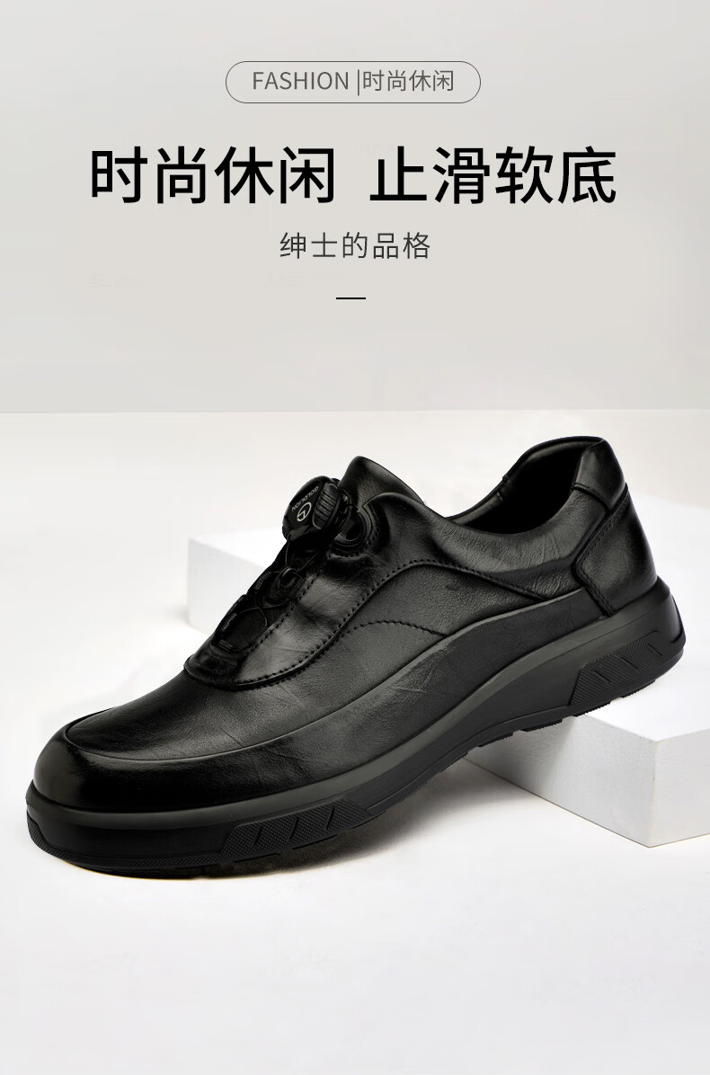 Goldlion Men's Shoes 2025 Autumn New Hand-scratch Pattern Men's Casual Leather Shoes Round Toe Thick Sole Swivel Buckle Business Commuting Shoes Black 38 One Size Larger Than Standard Leather Shoes