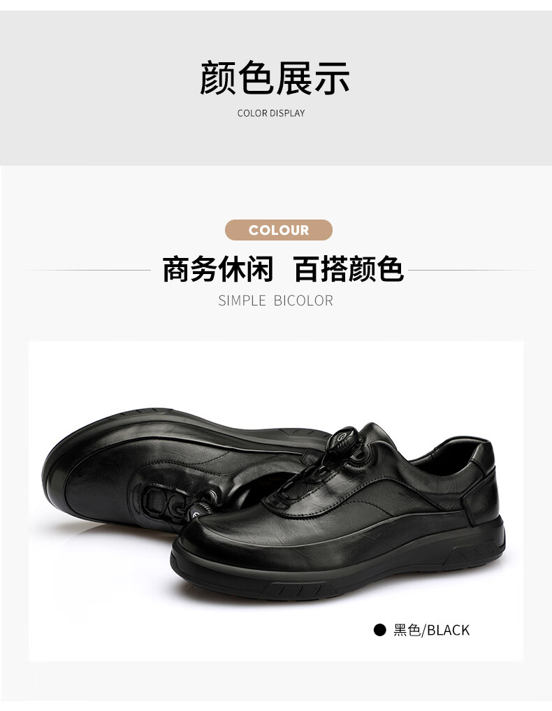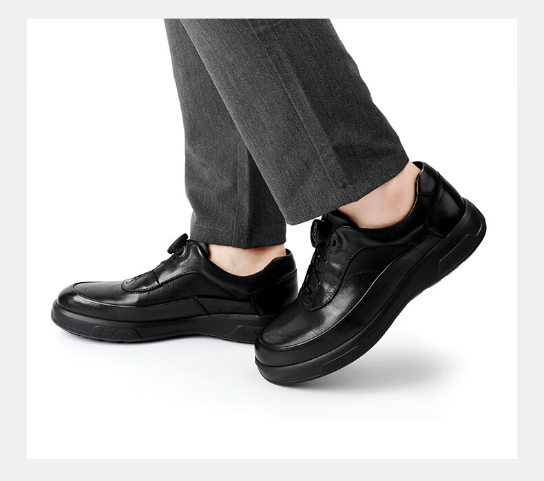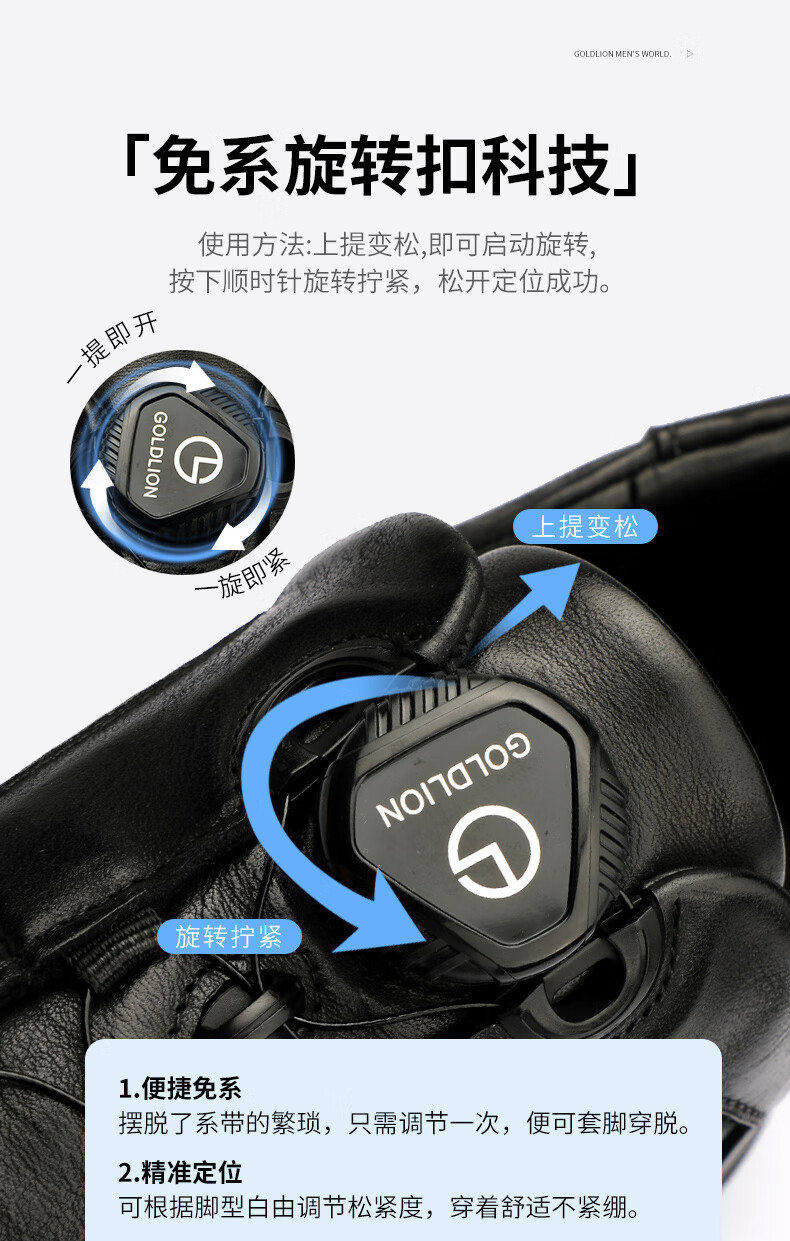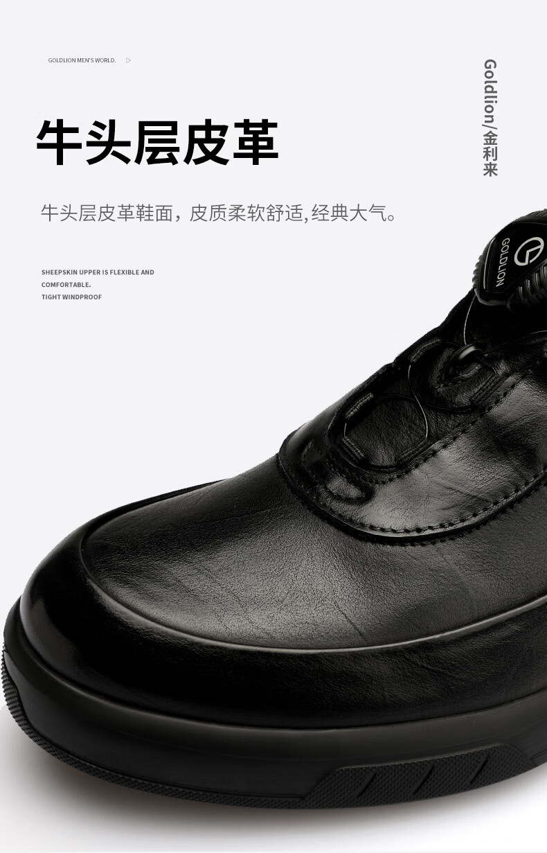 Goldlion Men's Shoes 2025 Autumn New Hand-scratch Pattern Men's Casual Leather Shoes Round Toe Thick Sole Swivel Buckle Business Commuting Shoes Black 38 One Size Larger Than Standard Leather Shoes