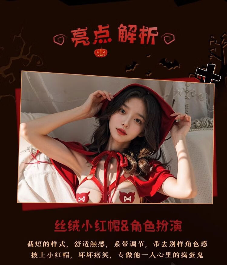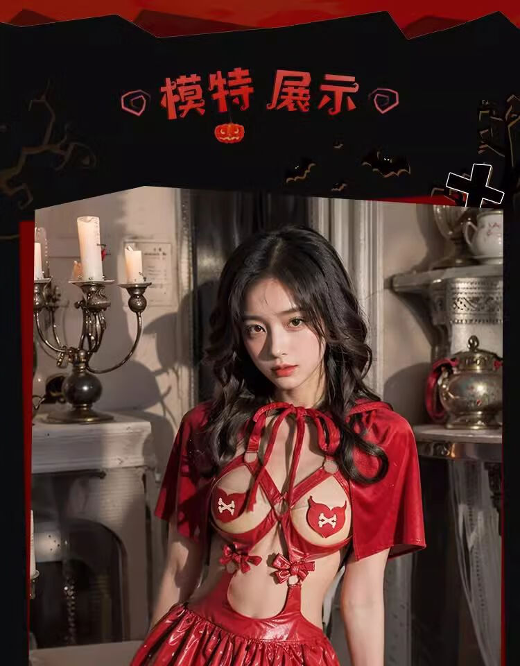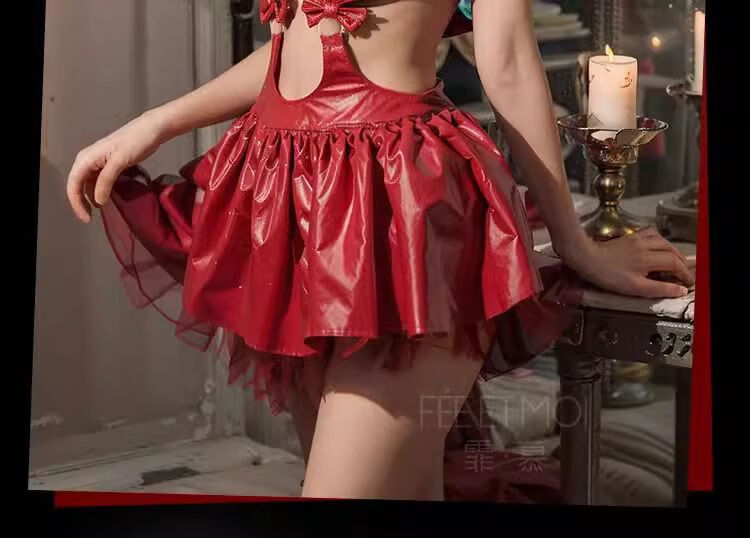 Christmas cos Little Red Riding Hood Breastless Dress SM Sexy No-Take Off Erotic Underwear Uniform Devil Suit Tempts Husband to Show Breasts Little Red Riding Hood Breastless Dress Chest Paste *2T Pants One Size