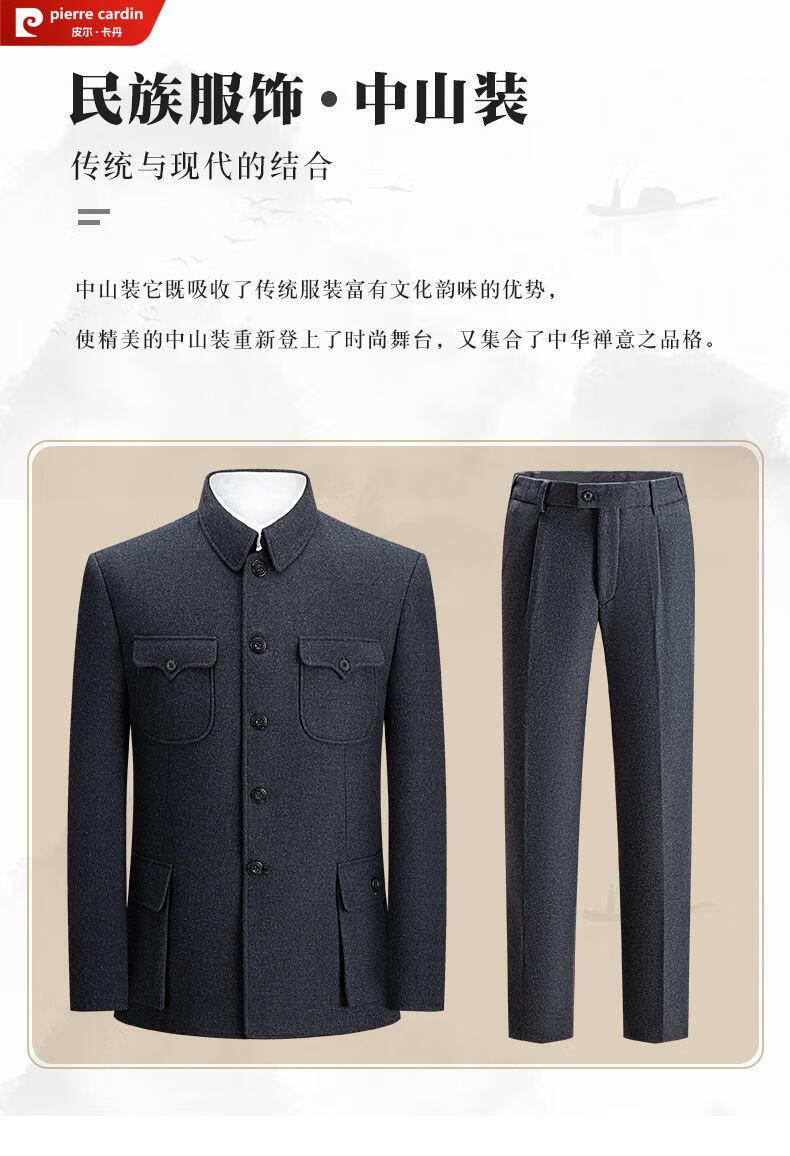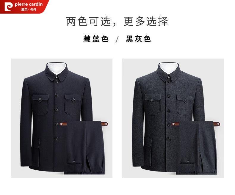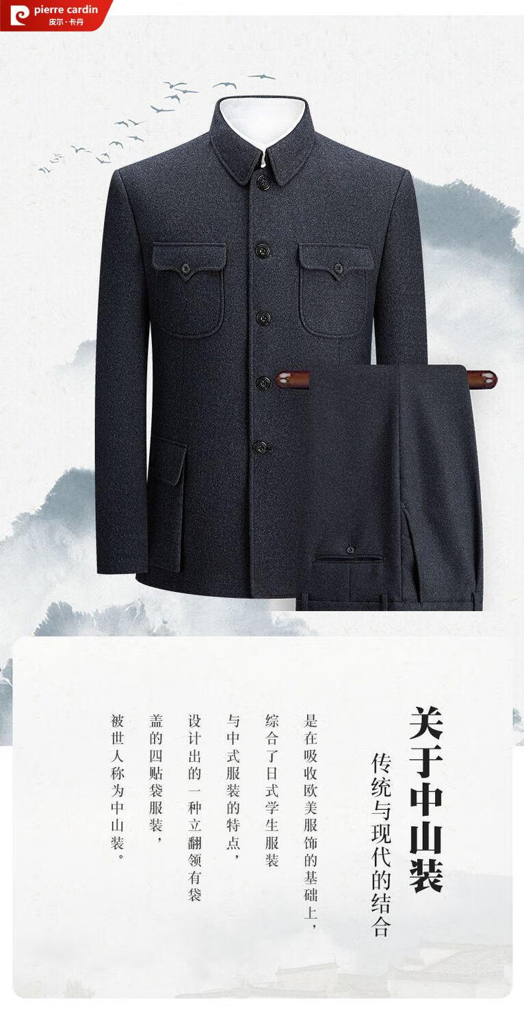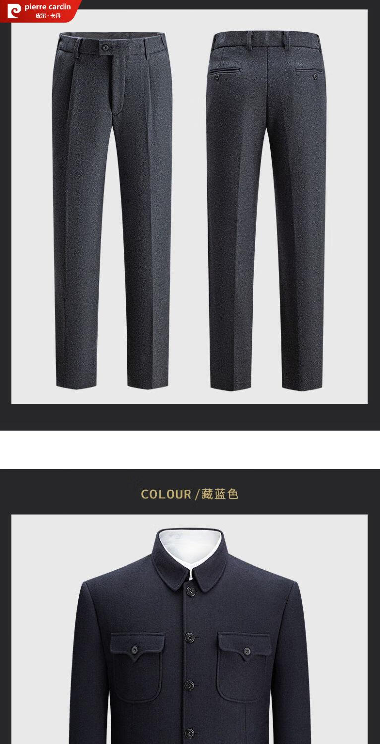 Pierre Cardin 2025 autumn and winter wool suit suit for middle-aged and elderly men, loose tunic suit, Chinese style Chinese dress two-piece set, navy blue XL 180