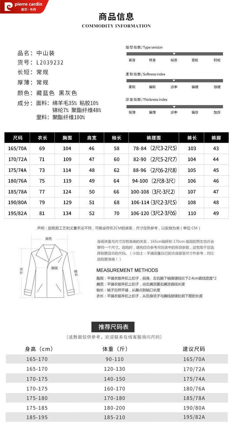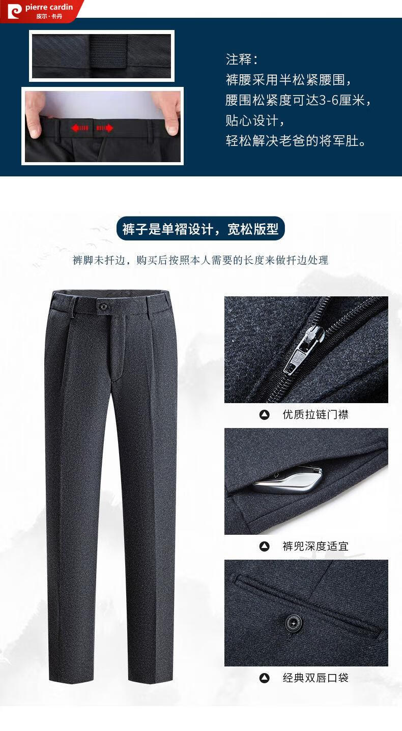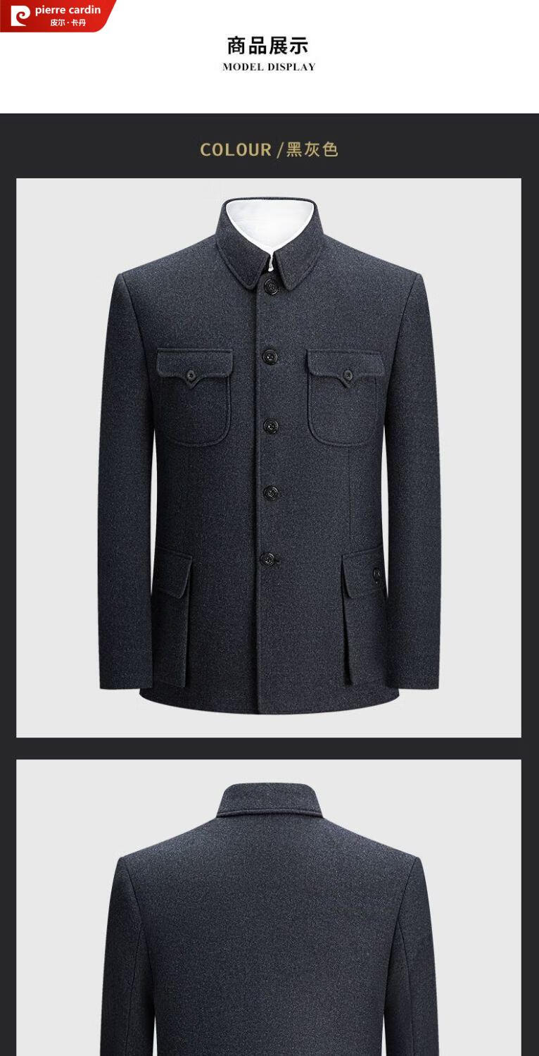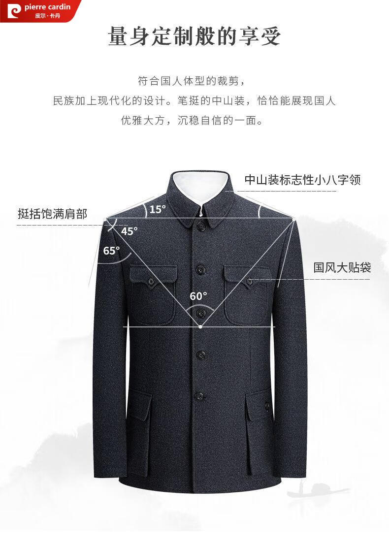 Pierre Cardin 2025 autumn and winter wool suit suit for middle-aged and elderly men, loose tunic suit, Chinese style Chinese dress two-piece set, navy blue XL 180
