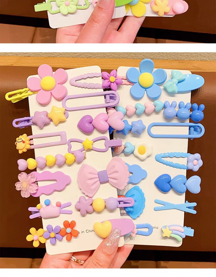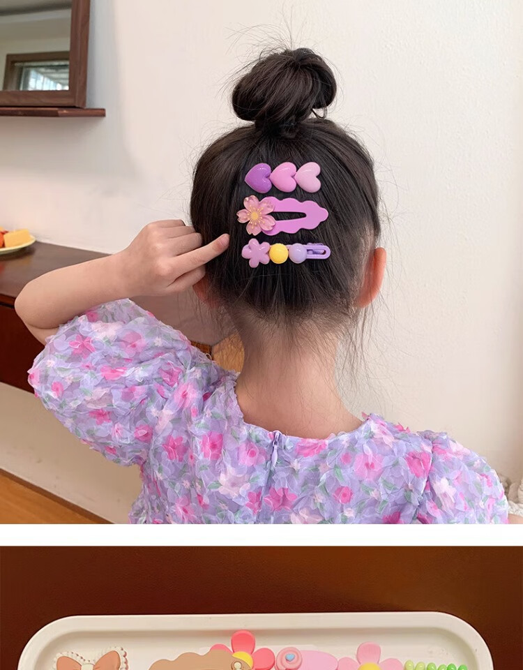 2025 New Dopamine Colorful Children's Hair Clips Cute Little Girls Hair Clips Girls Baby Duckbill Clip Hair Accessories Pink Love Seven-Piece Set 1 Card