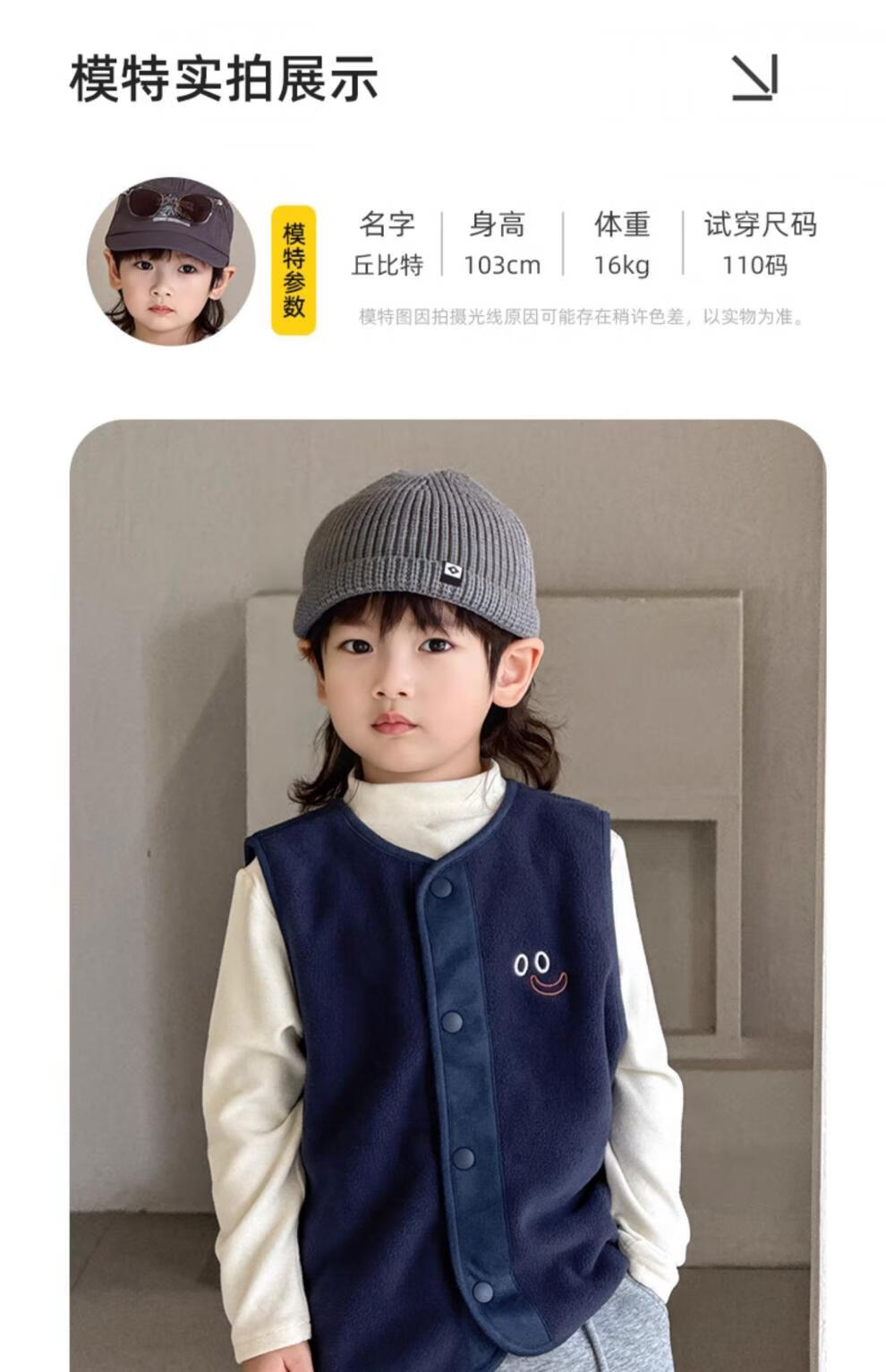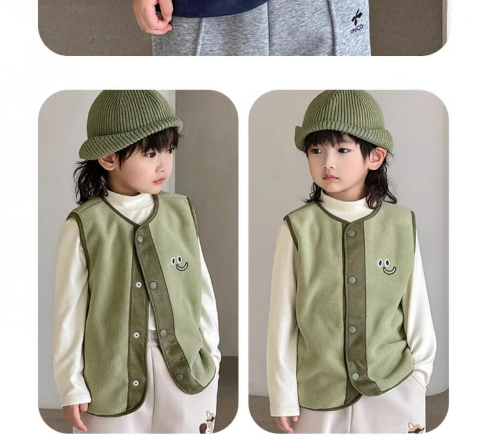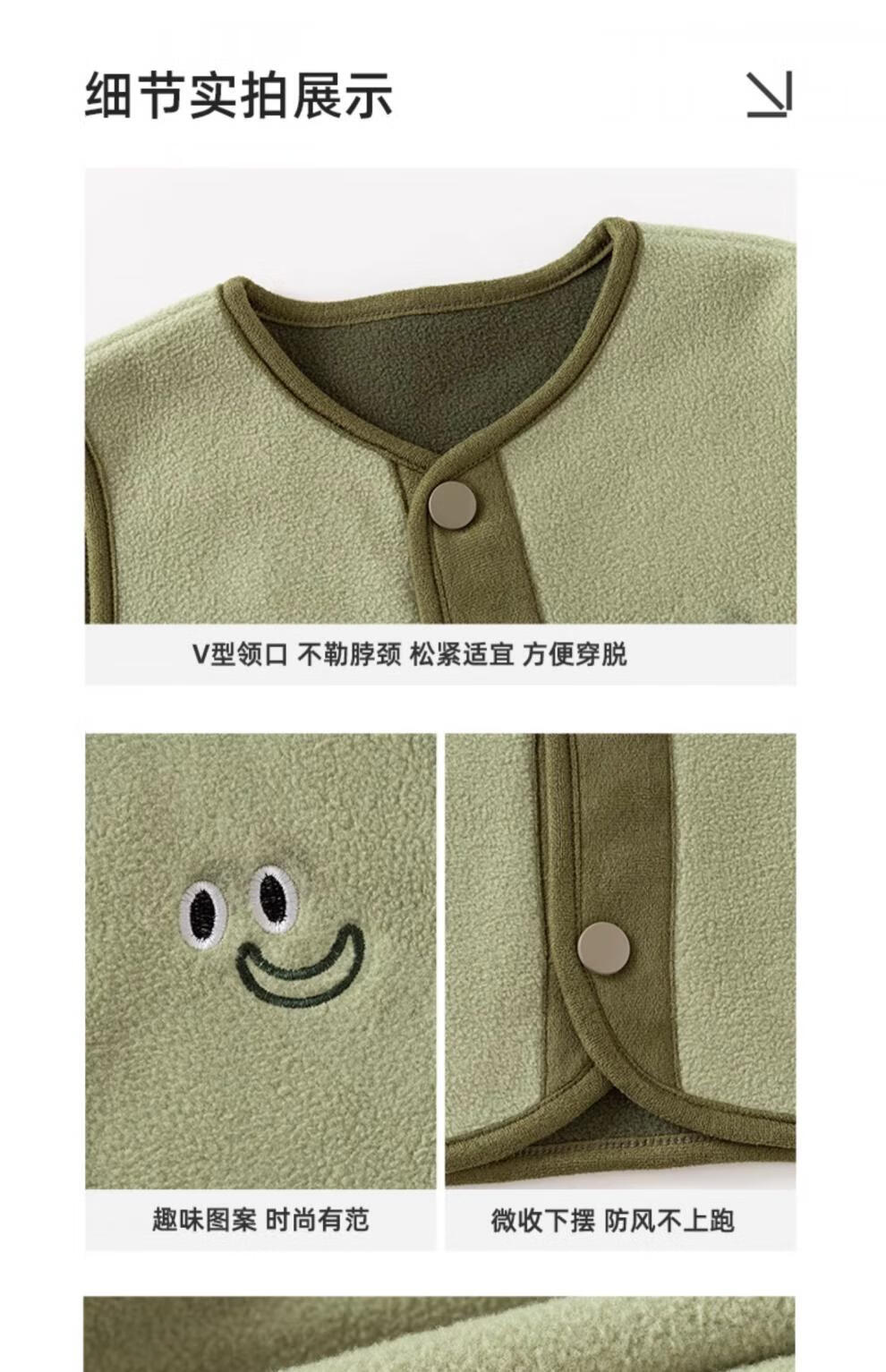 Disney children's vest autumn and winter style boys vest outer wear new boys winter polar fleece vest jacket thickened vest matte pine green 130 cm