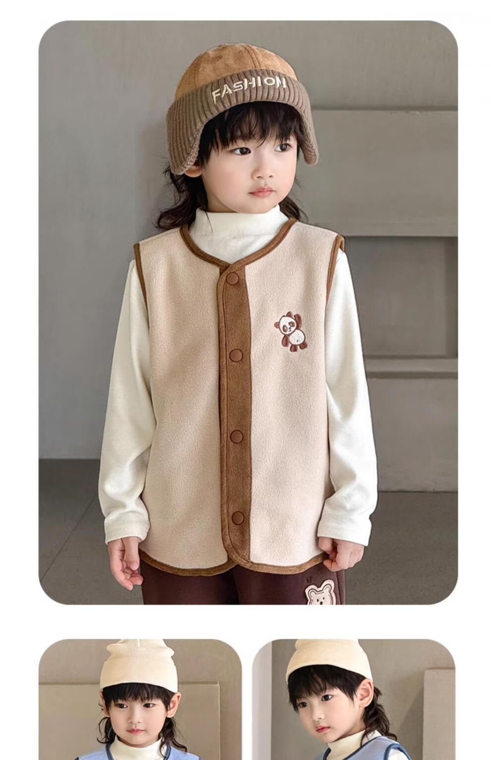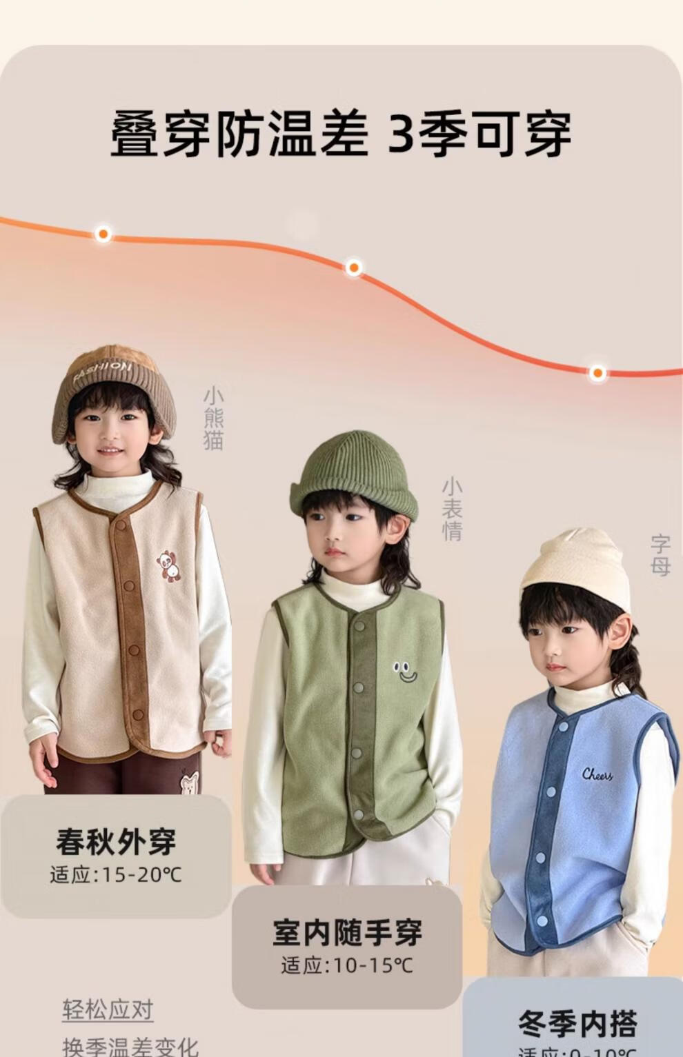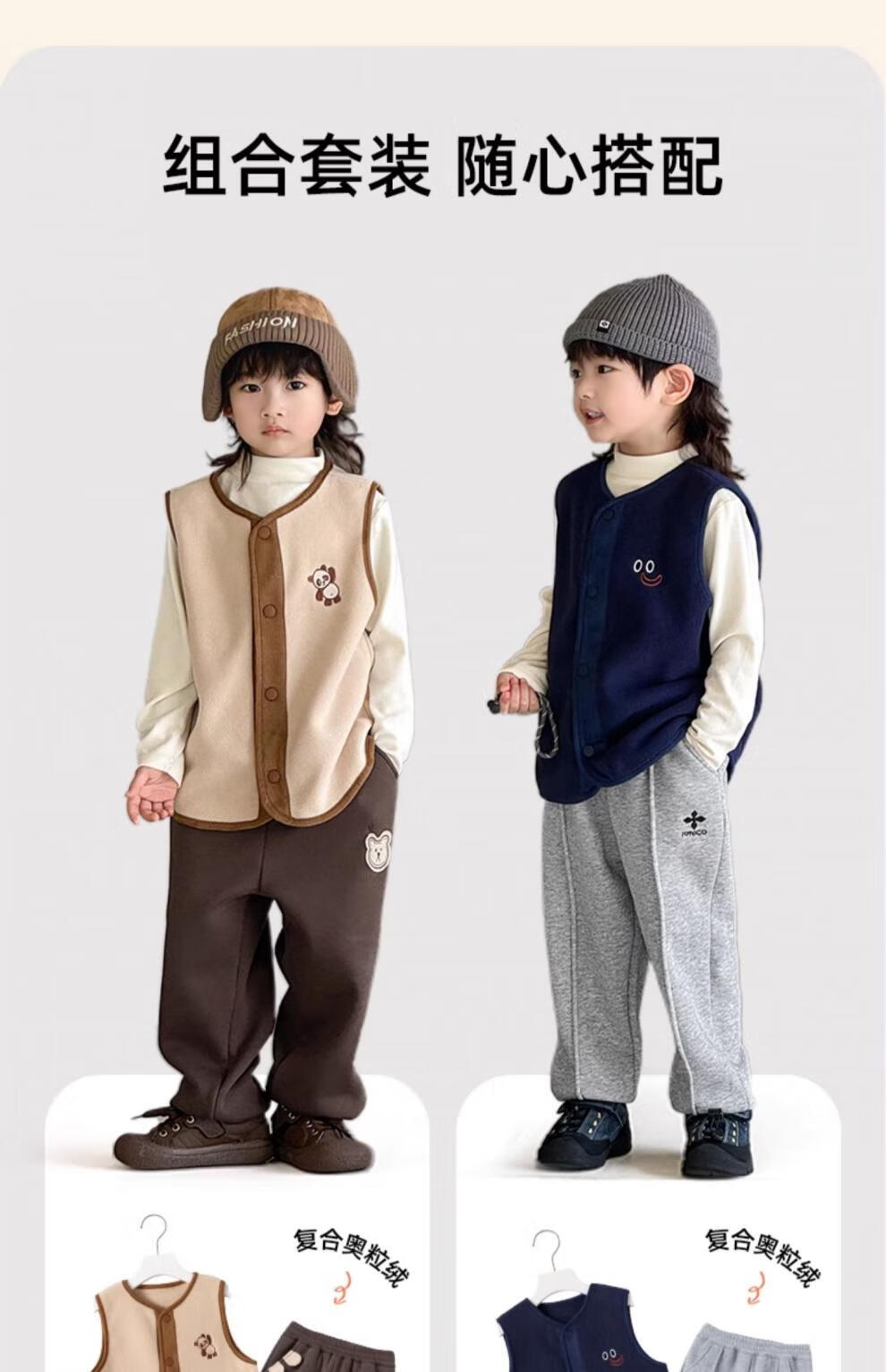 Disney children's vest autumn and winter style boys vest outer wear new boys winter polar fleece vest jacket thickened vest matte pine green 130 cm