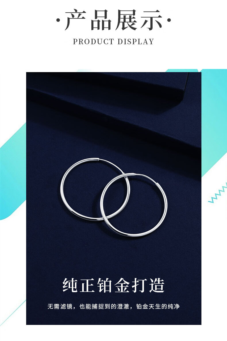 Duozun platinum earrings for women pt950 genuine earrings and earrings platinum earrings plain ring glossy earrings new Chinese Valentine's Day gift glossy earrings large size 8.73g (pair)