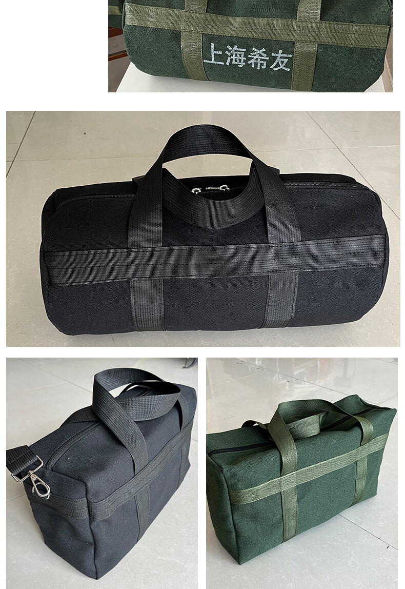 Kaosen canvas hardware tool storage portable large-capacity storage bag wear-resistant thickened canvas hardware tool bag green round bag 24*11cm