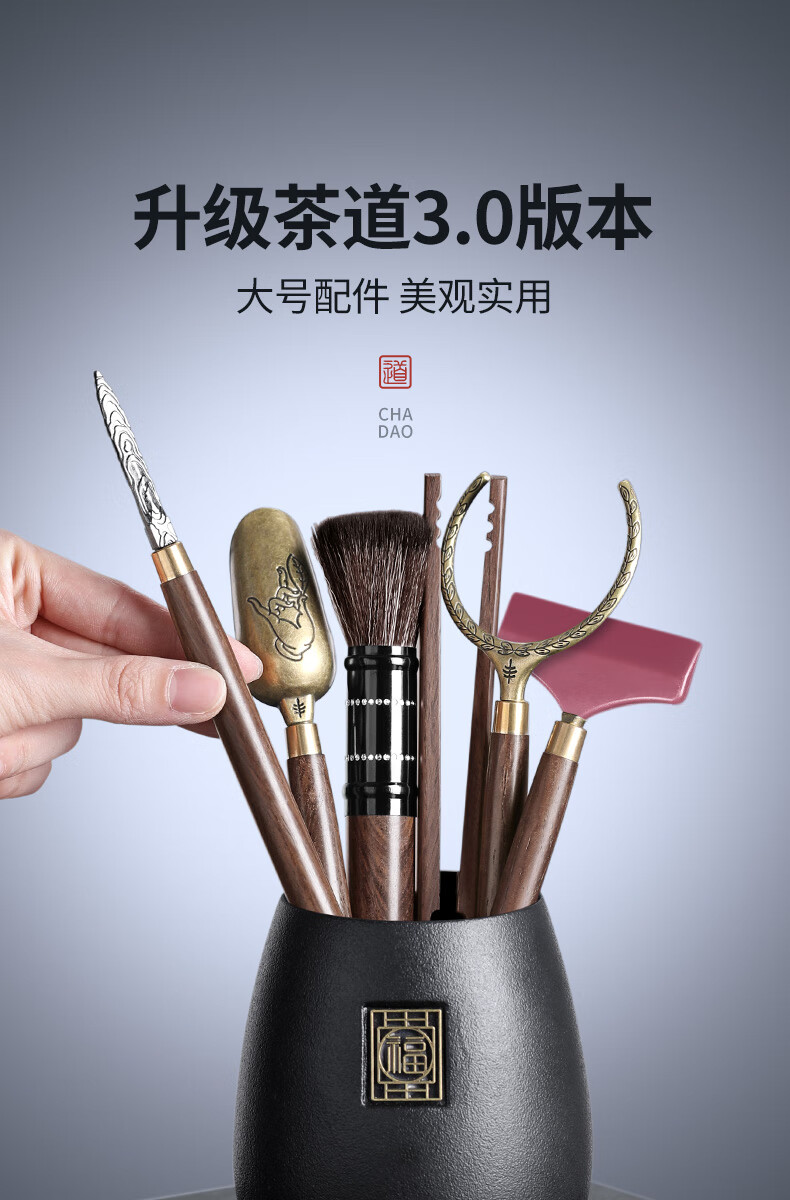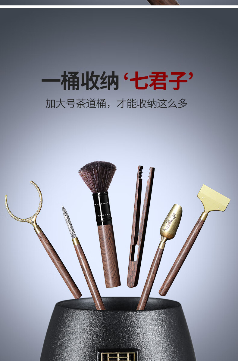 Hui Xun Tea Ceremony Six Gentlemen Set Kung Fu Tea Set Accessories Pu'er Tea Knife Tea Clamp Tea Making Tools Tea Table Ornaments 2-Black Pottery Tianfu Tea Ceremony Bottle + Ebony Yuan She 5 Accessories