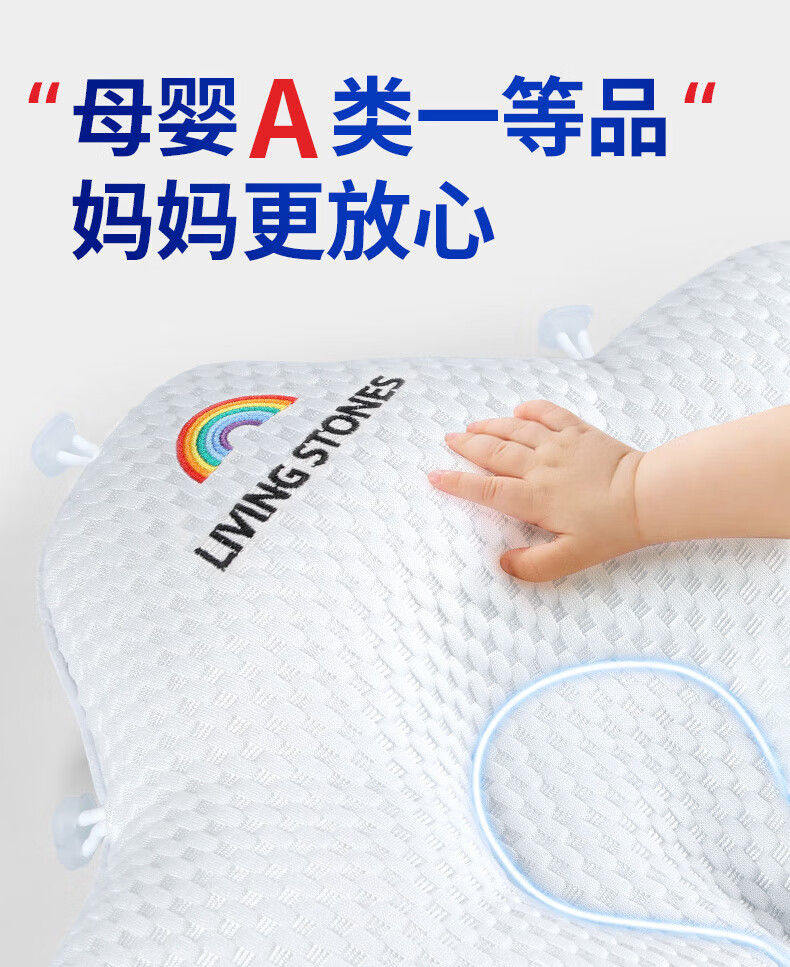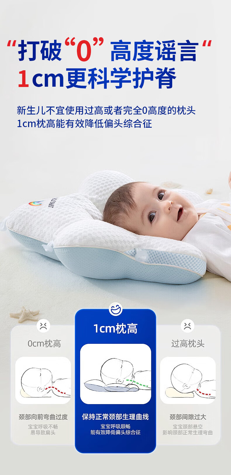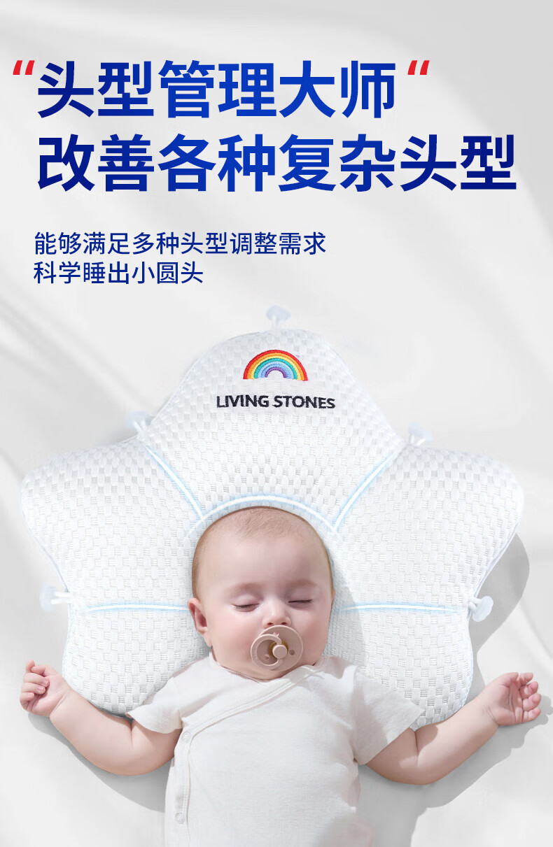 Oein shaped pillow for babies 0-6 months sleeping with round heads 0-1 years old newborn pillow to correct eccentric head type summer medical pillow white and blue color matching