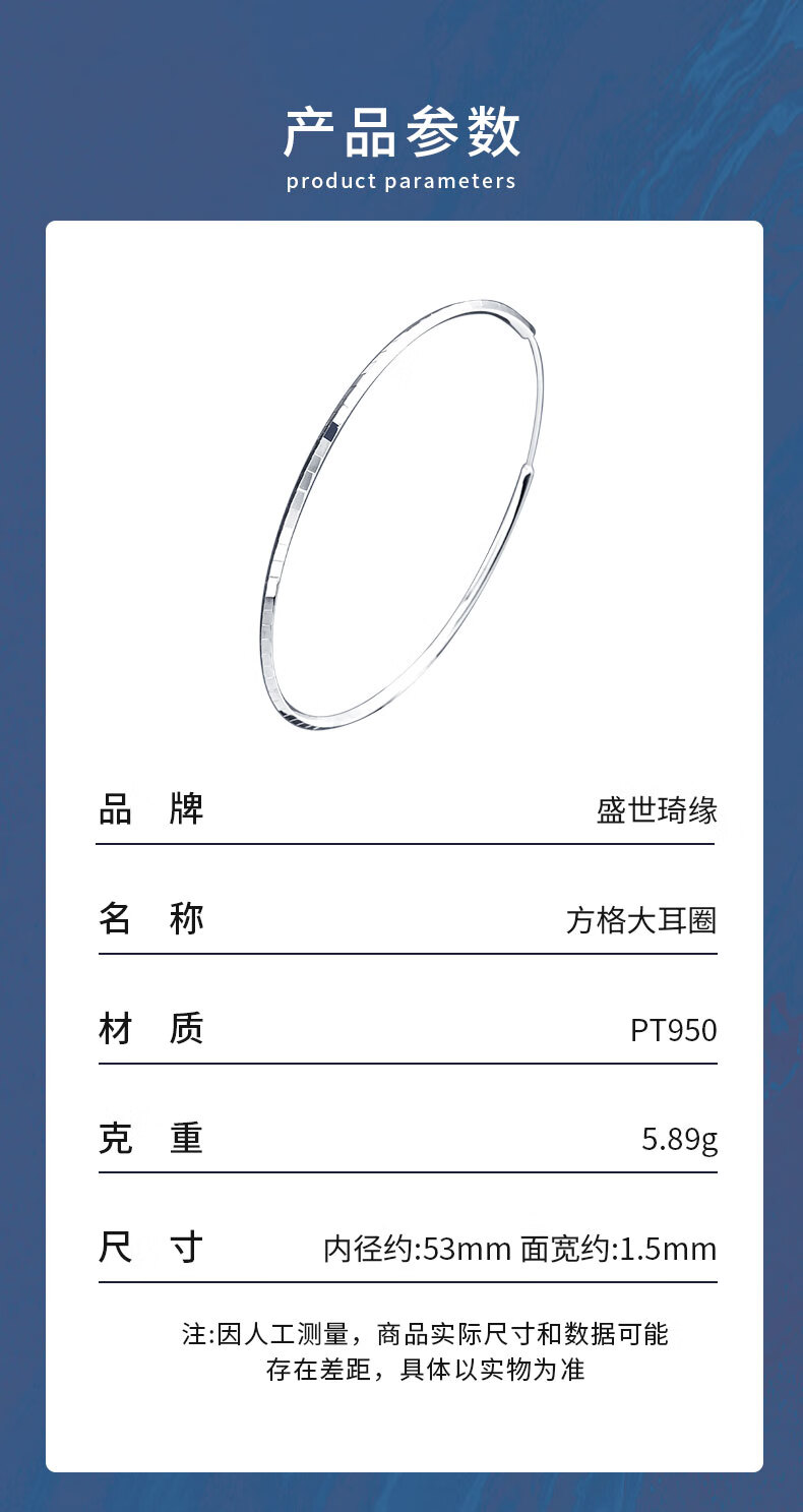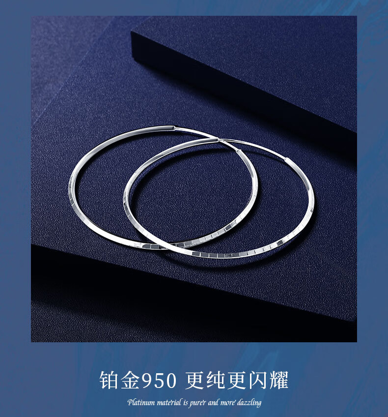 Shengshi Qiyuan platinum earrings pt950 genuine platinum earrings earrings high-end flash fashion earrings women's square large earrings square earrings pair 5.8-6 grams