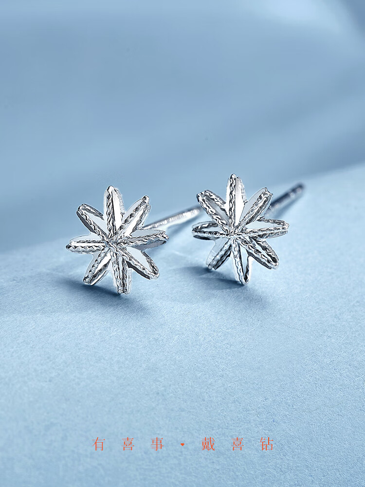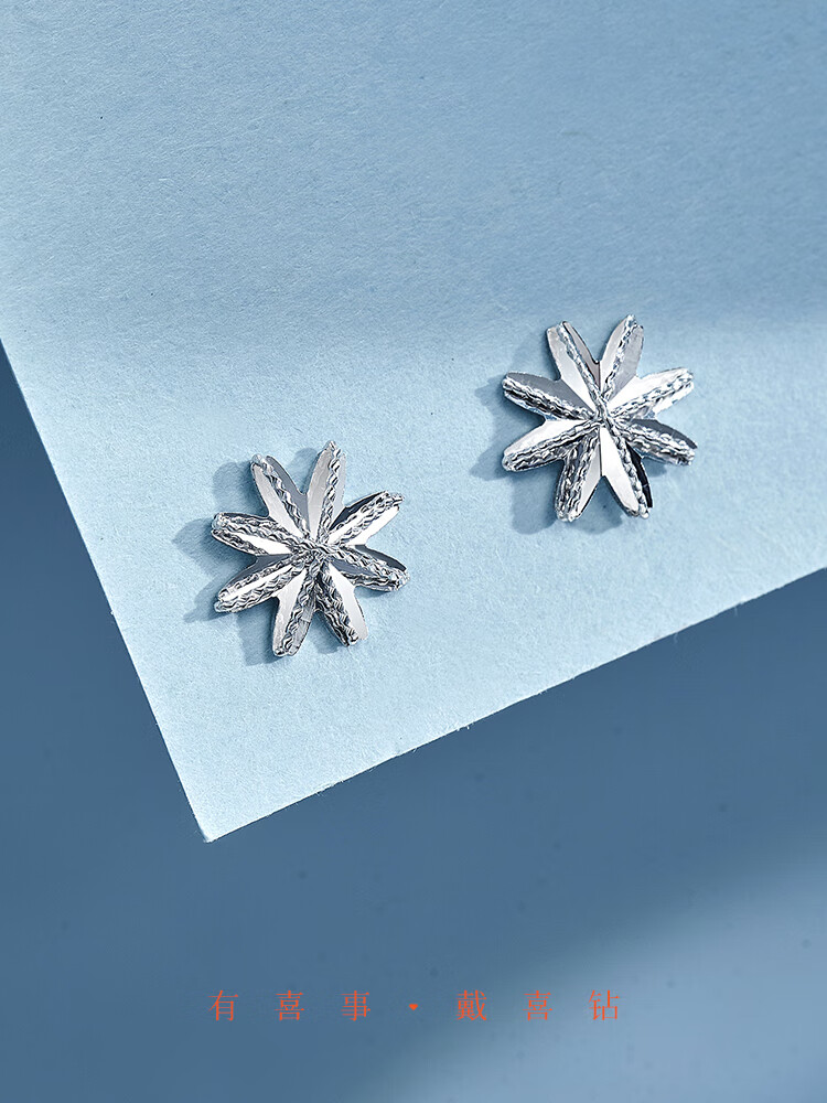 Diamond platinum high-end earrings for women. Eight-pointed star earrings. Versatile platinum earrings for girlfriend’s birthday. Platinum approx. 1.16g.