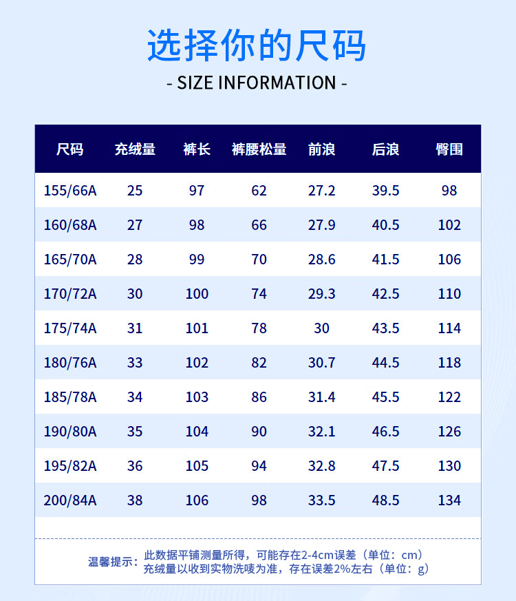 China (cm) 160-165/84-86 165-170 / 88-90 167-172 / 92-96 168-173 / 98-102 170-176 / 106-110