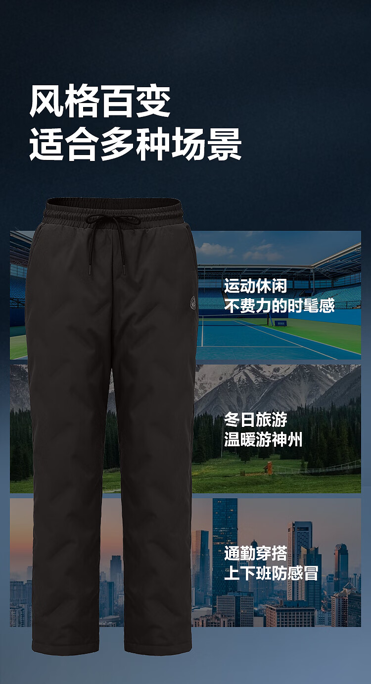 BOSIDENG's new style women's casual down pants, warm and windproof, fashionable casual pants for men and women, black 8056 XS 155/62A