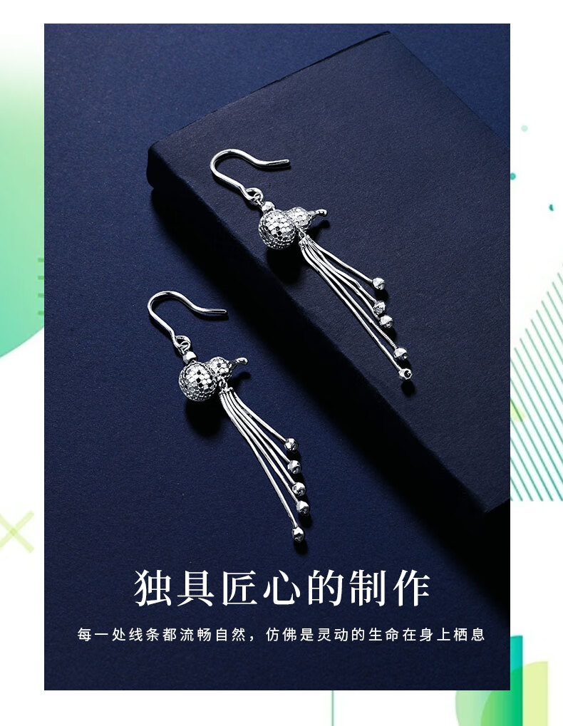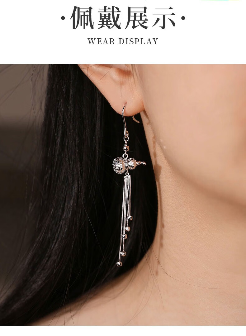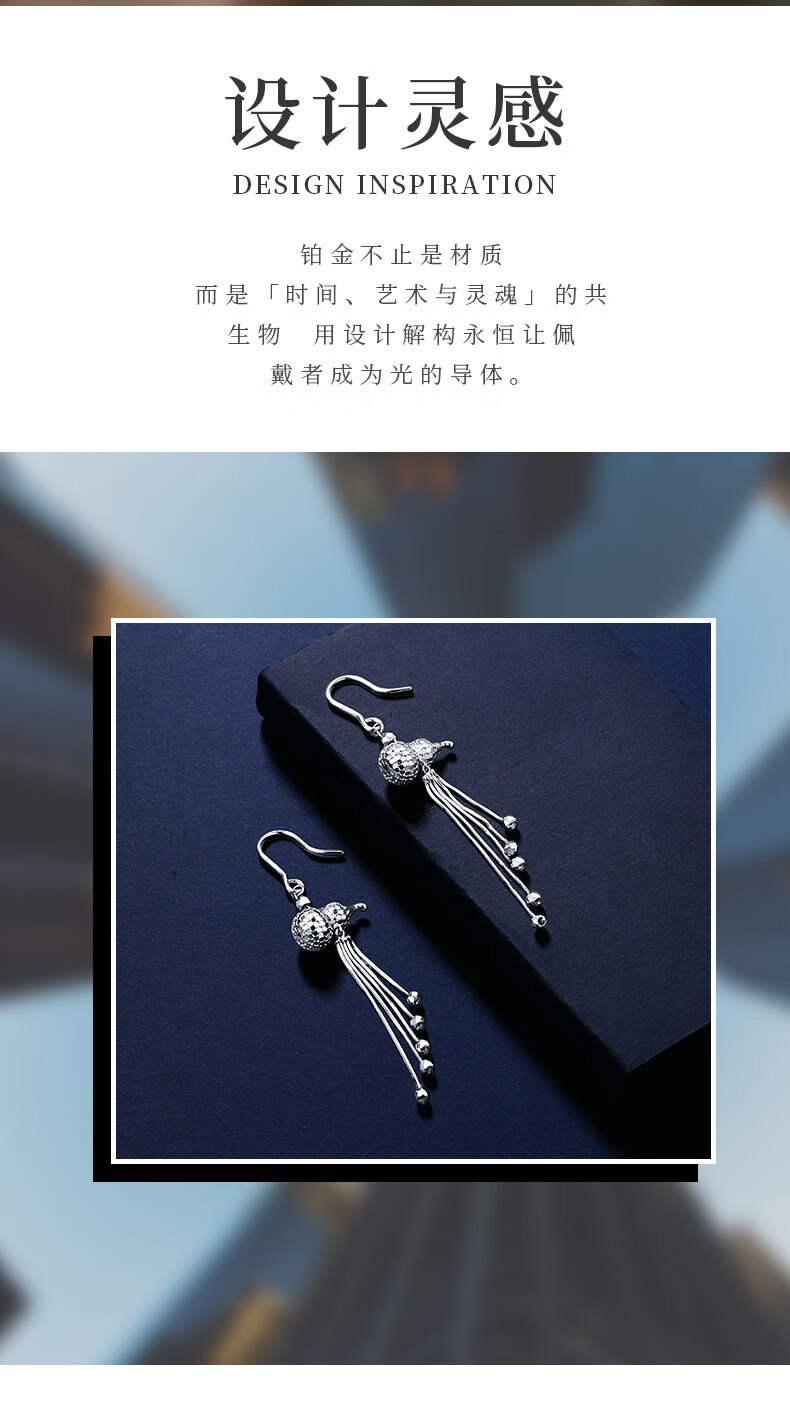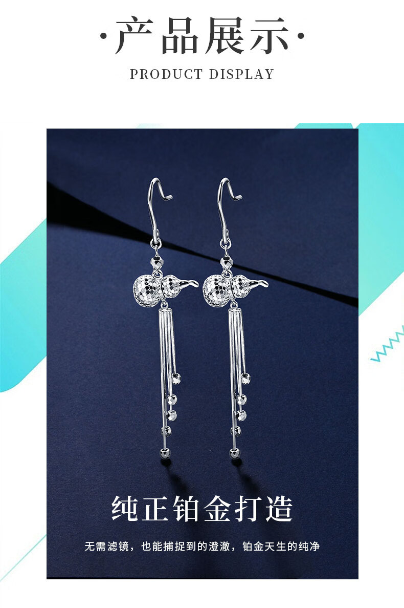 Duozun pt950 platinum ear hooks for women platinum tassel gourd earrings earrings new Chinese Valentine's Day birthday gift Kirin gourd ear hooks 8-9 grams (pair)