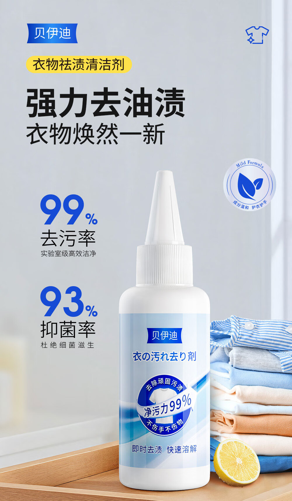 Beidi Clothes Greasy Cleaner is a professional cleaning and penetrating agent for removing all kinds of edible oil stains. It can dissolve hundreds of stains and powerfully remove stains. 1 bottle