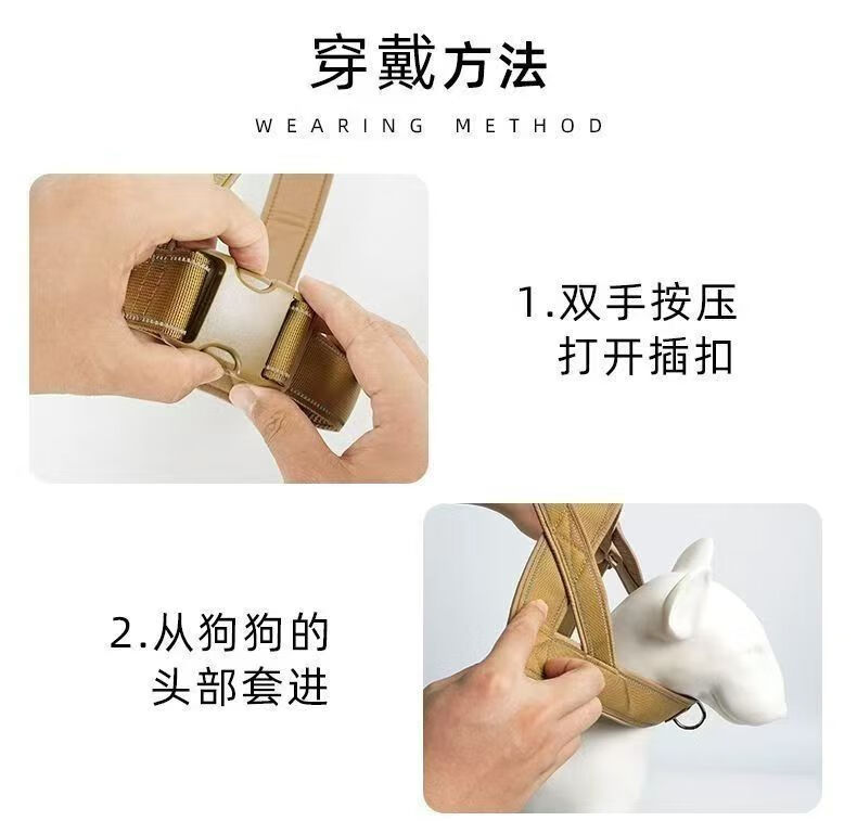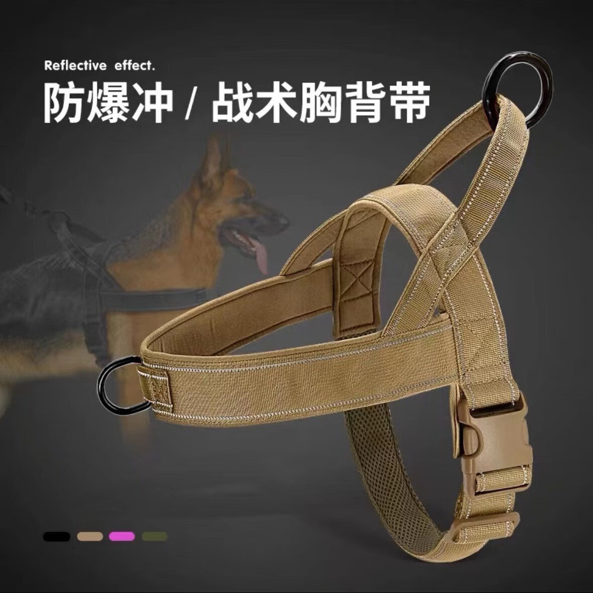 Dog Leash Large Dog Harness Vest Collar Horse Dog Golden Retriever German Shepherd Collar Dog Leash Tactical Harness Khaki (excluding rope) M size (chest 59-70cm recommended 25-40Jin Jin equals 0.5kg)