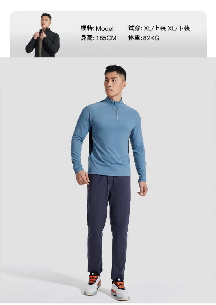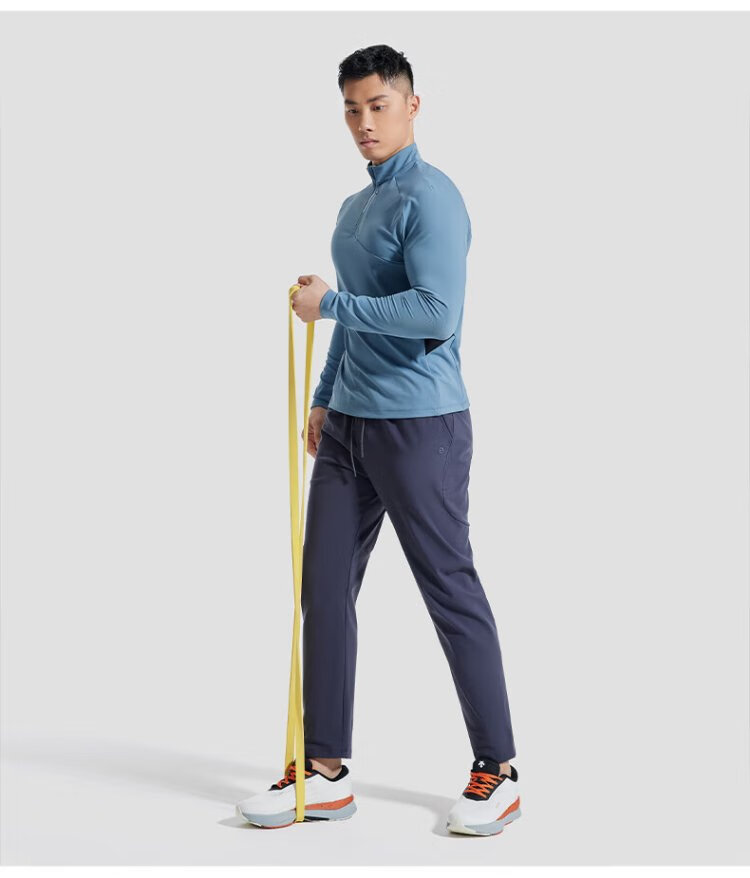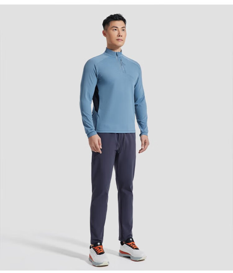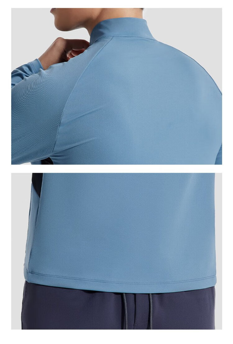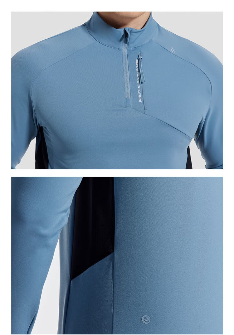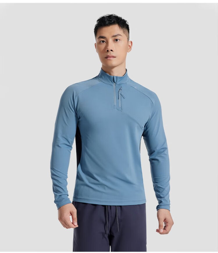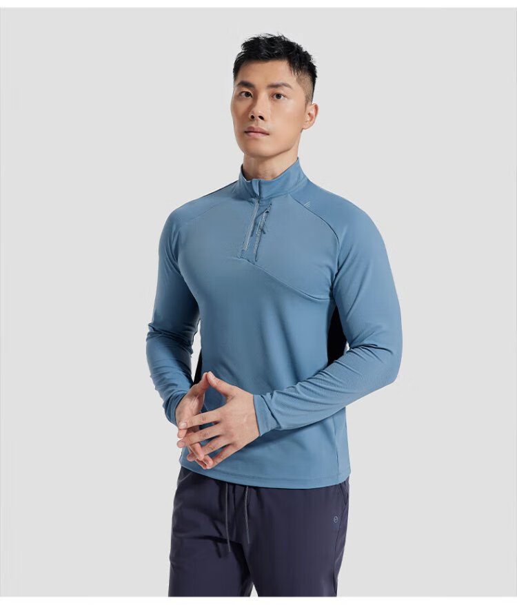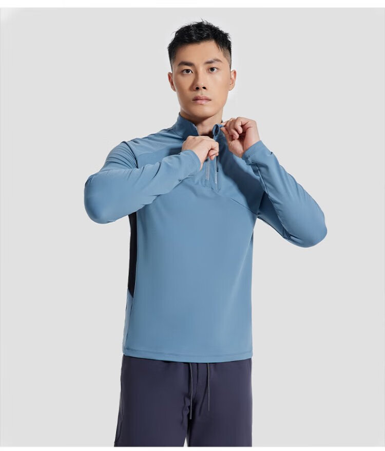 SOSOLEMON autumn and winter running sweatshirt half-zip cycling fitness running tennis moisture-wicking sports long-sleeved quick-drying t-shirt fog blue L