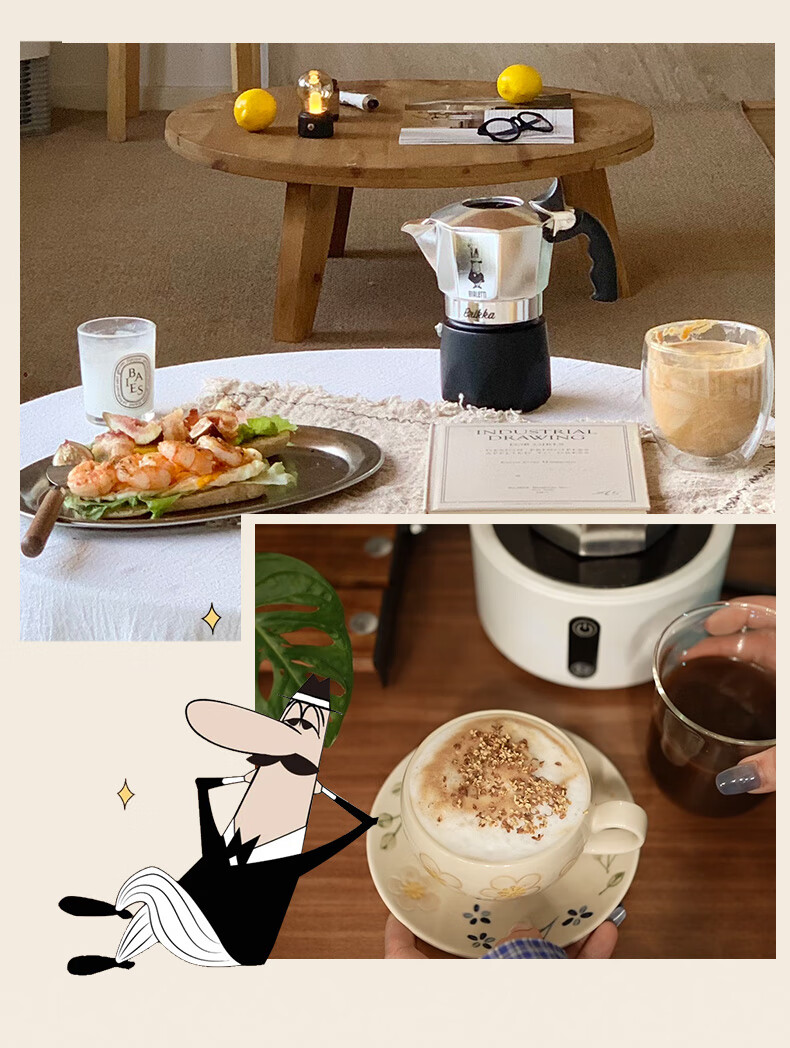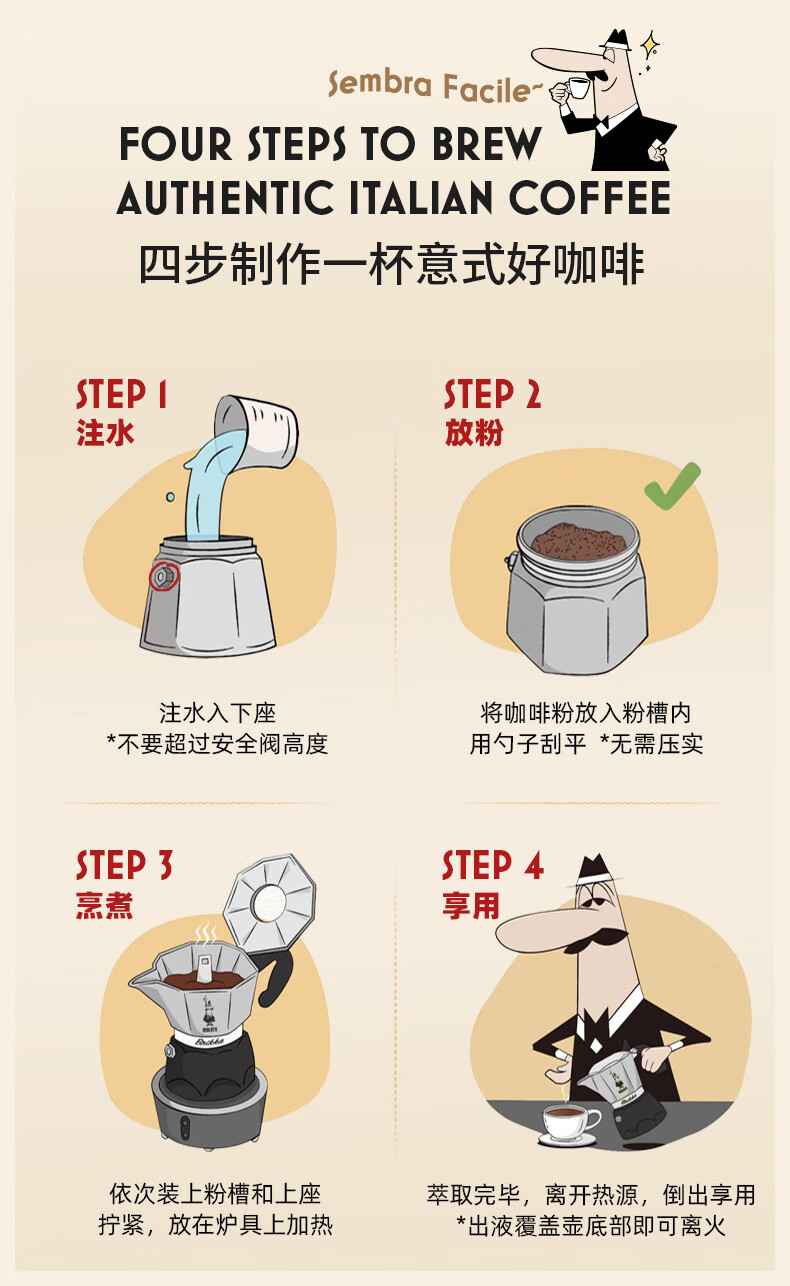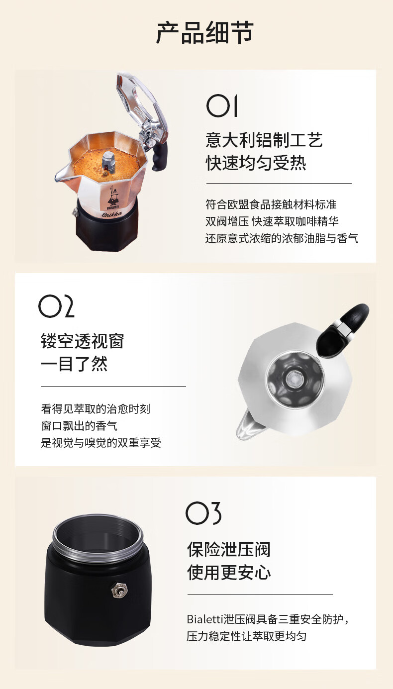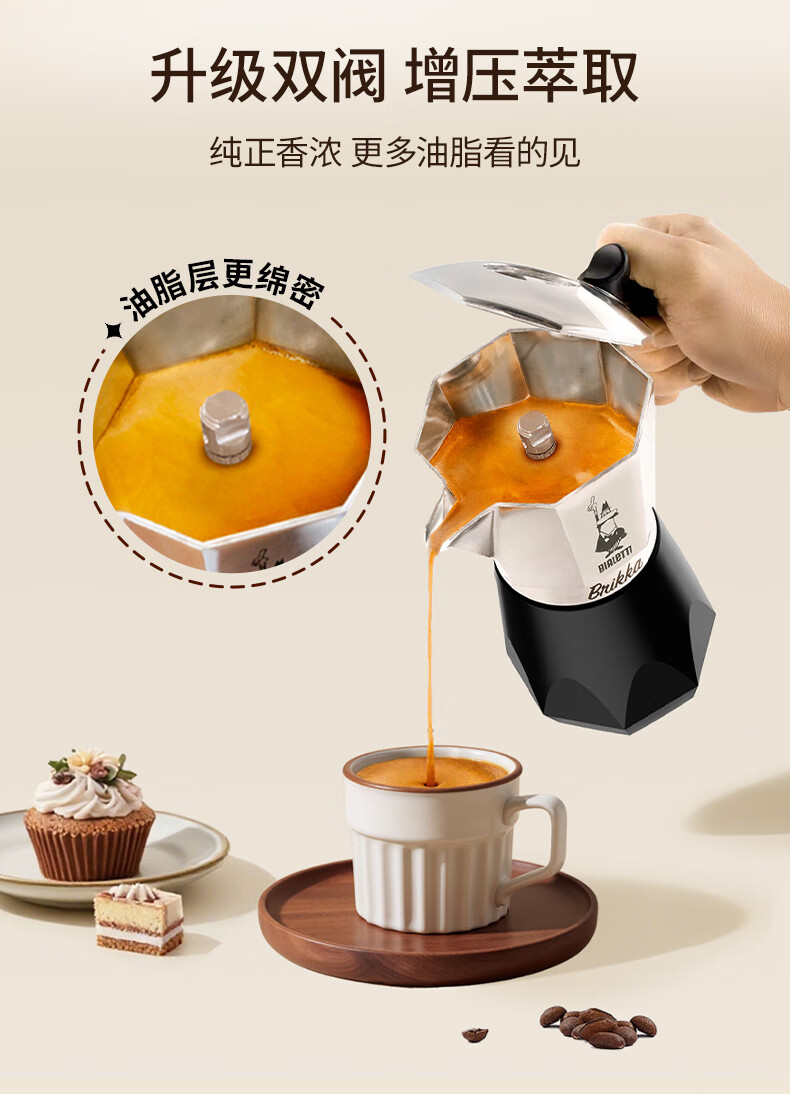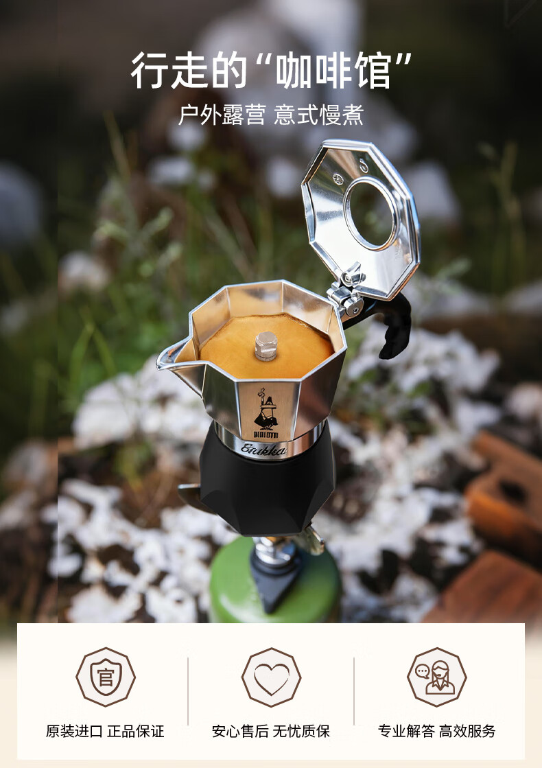 Bialetti Double Valve Moka Pot Italian American Coffee Machine Outdoor Portable Camping Home High Pressure Hand Brewed Coffee Pot 2 Cups Classic Color