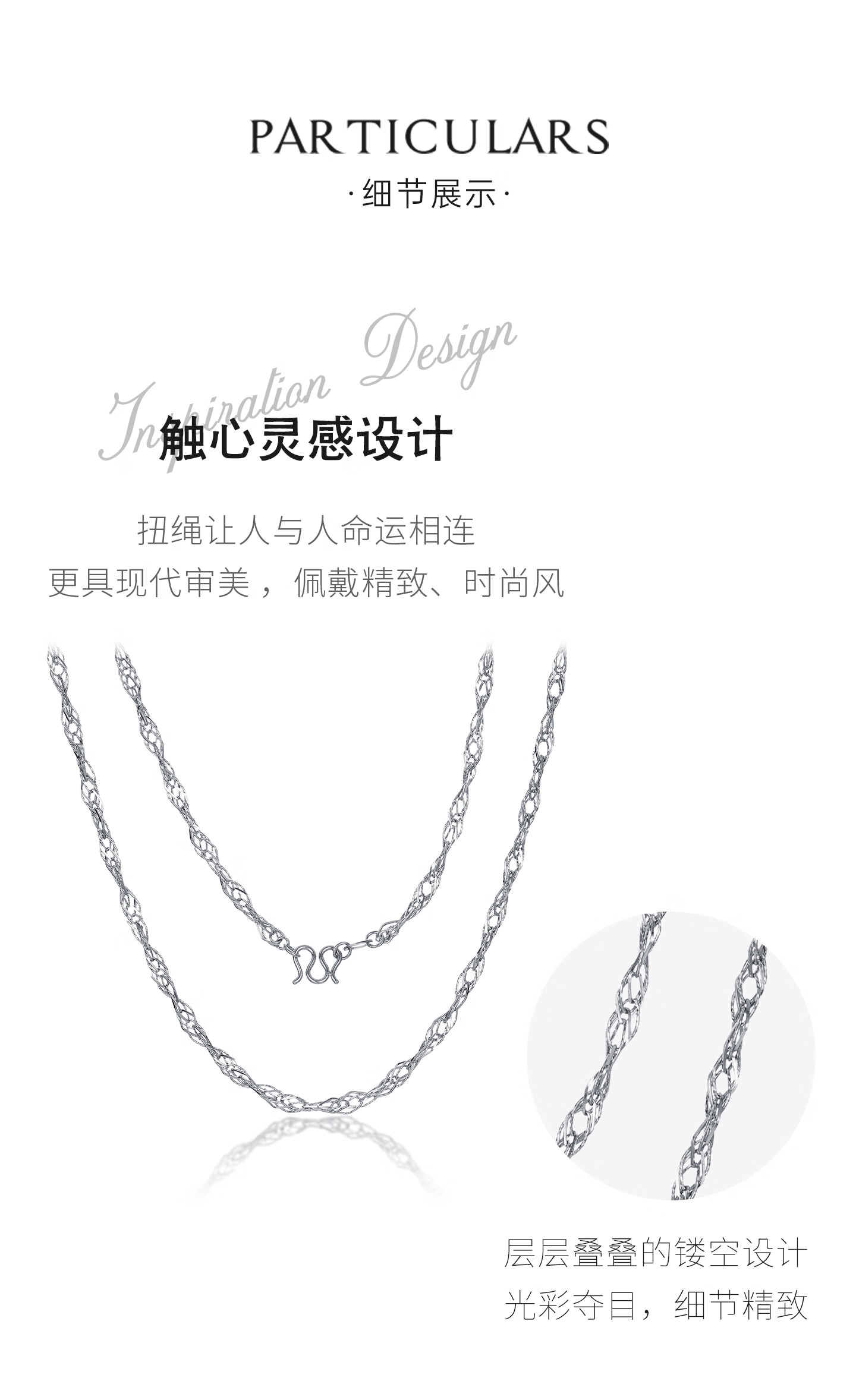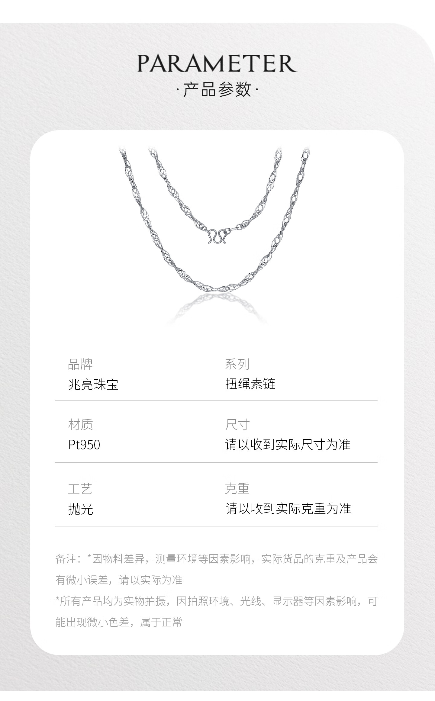 Zhaoliang Hemp Rope Platinum Necklace Women's PT950 Platinum Necklace Platinum Plain Chain Clavicle Chain Chinese Valentine's Day Gift for Girlfriend 8.33g