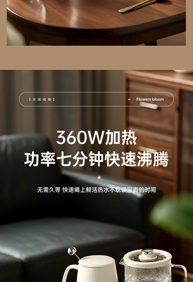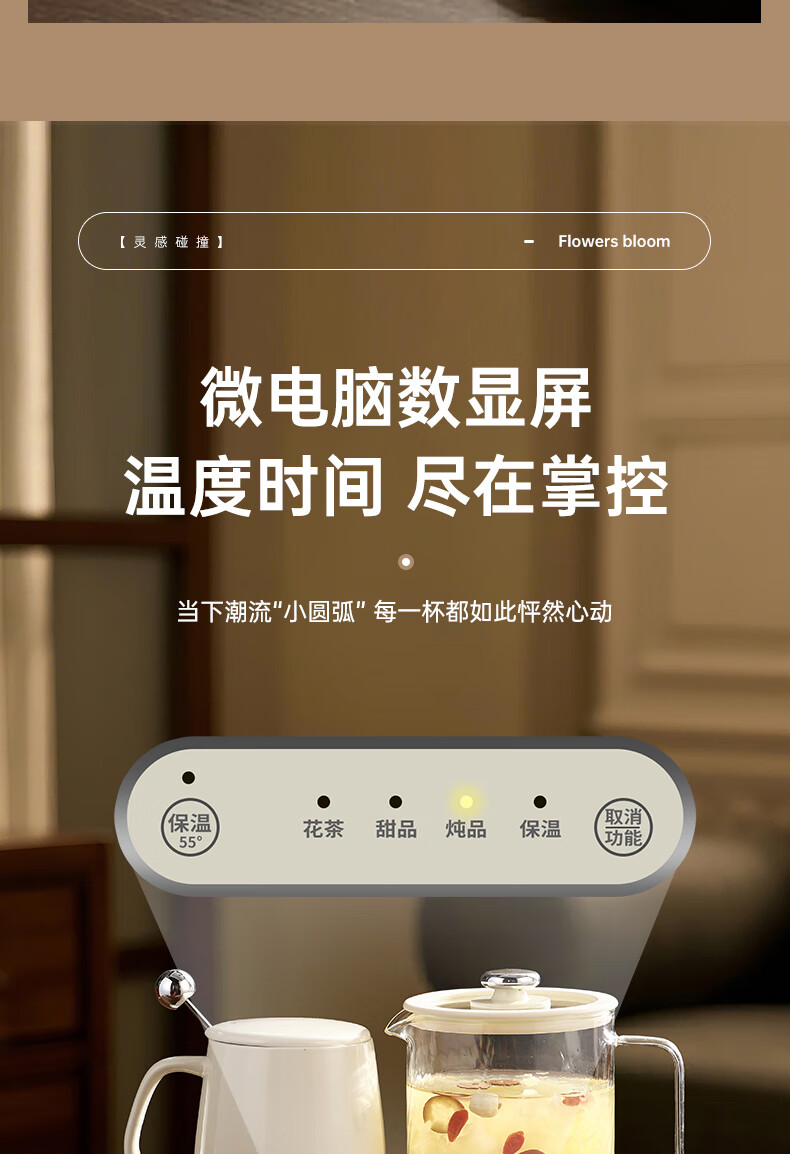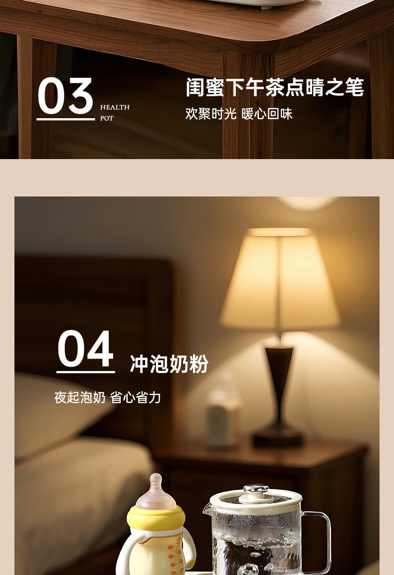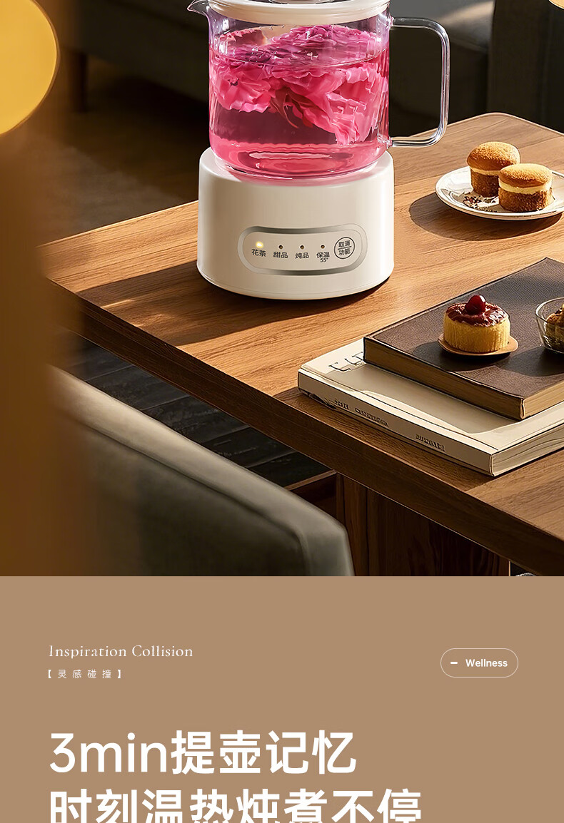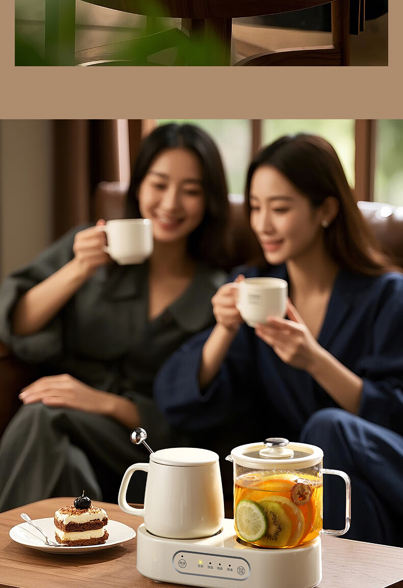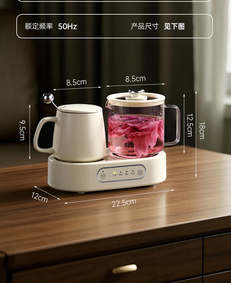 All-glass health pot double-cup tea boiler stewing all-in-one kettle small automatic constant temperature ceramic thermos cup double pot set 0.8L +0.4L office stew cup