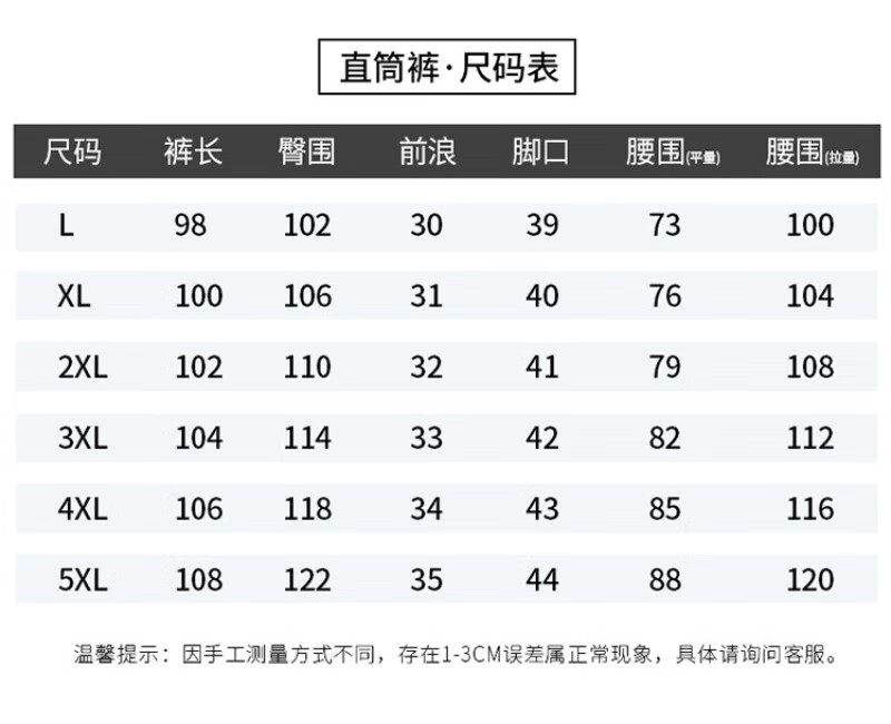 Outseam (cm) 99 cm 101.5 cm 104 cm 106.5 cm 109 cm
