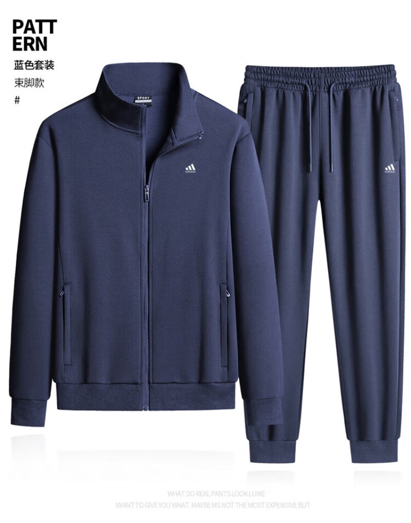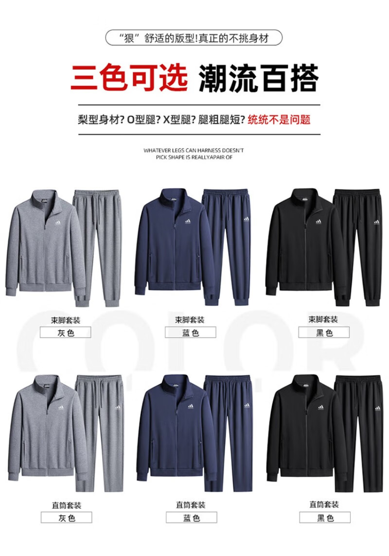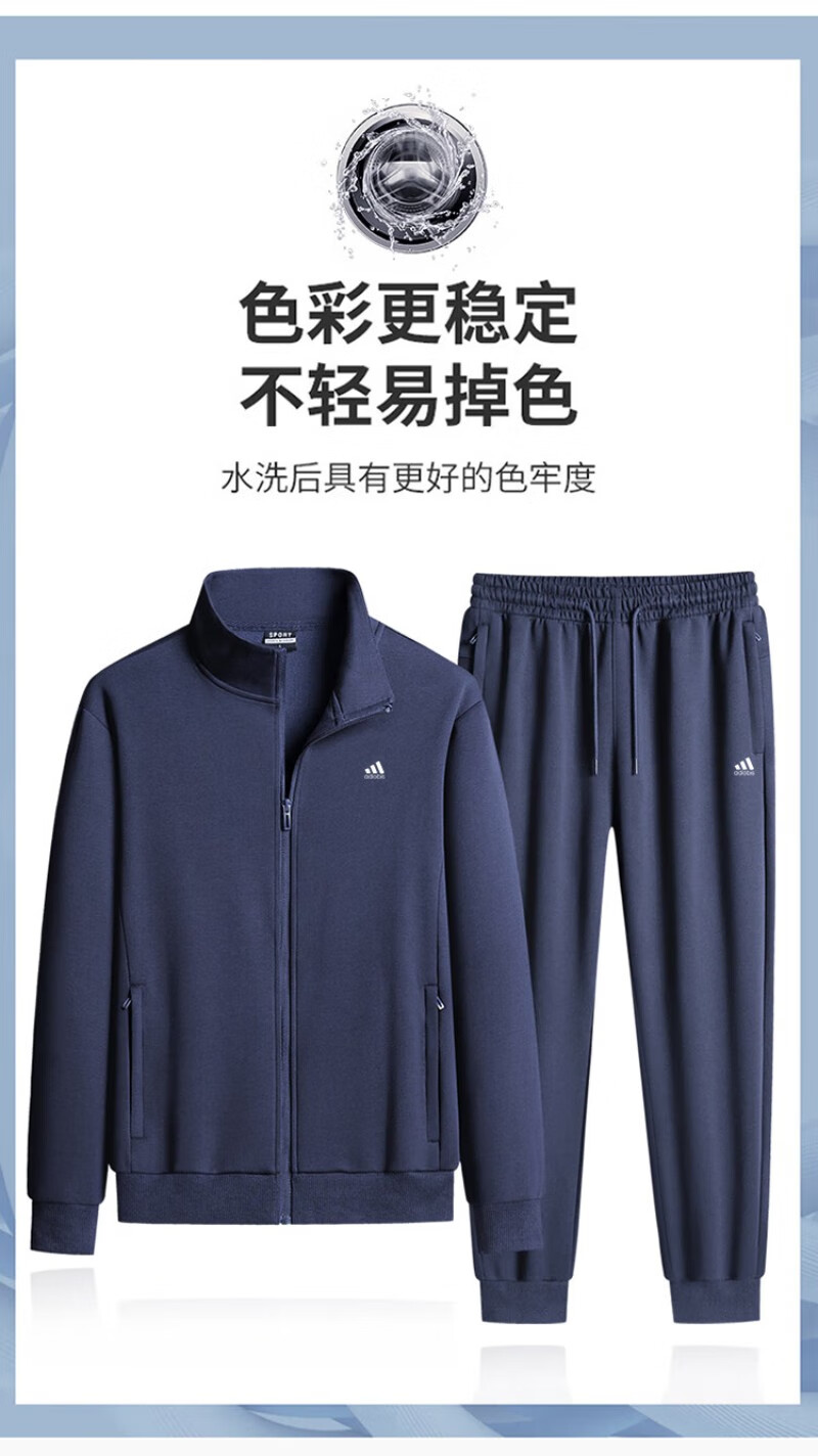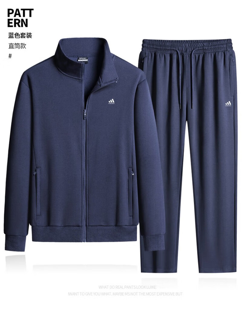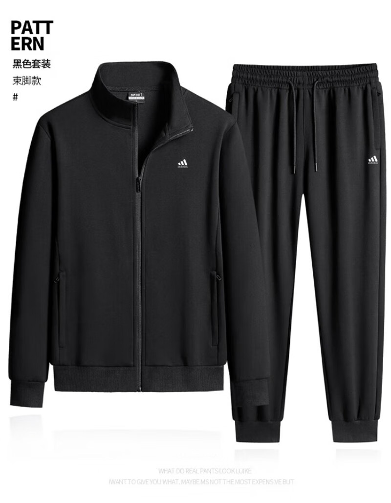 Adidas casual sports suit men's pure cotton winter velvet thickened stand-up collar middle-aged and elderly running fitness two-piece set stand-up collar gray straight (spring and autumn) 4XL recommended 170-190Jin Jin equals 0.5 kg