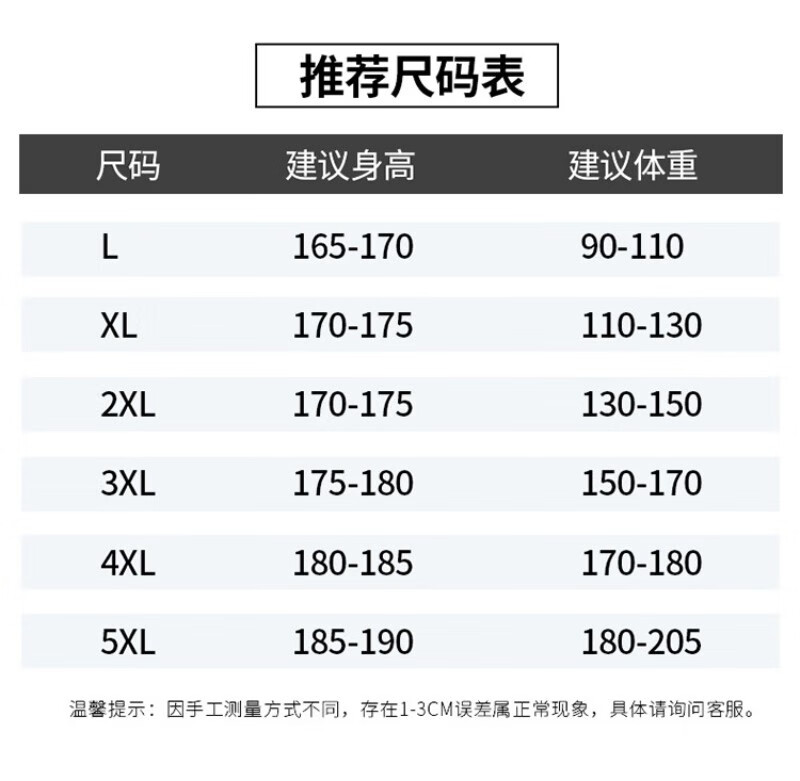 China (cm) 165 / 88-90 170 / 96-98 175 / 108-110 180 / 118-122 185 / 126-130