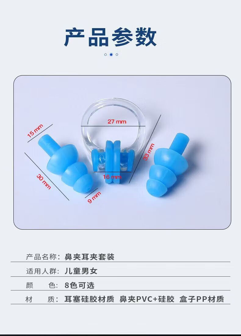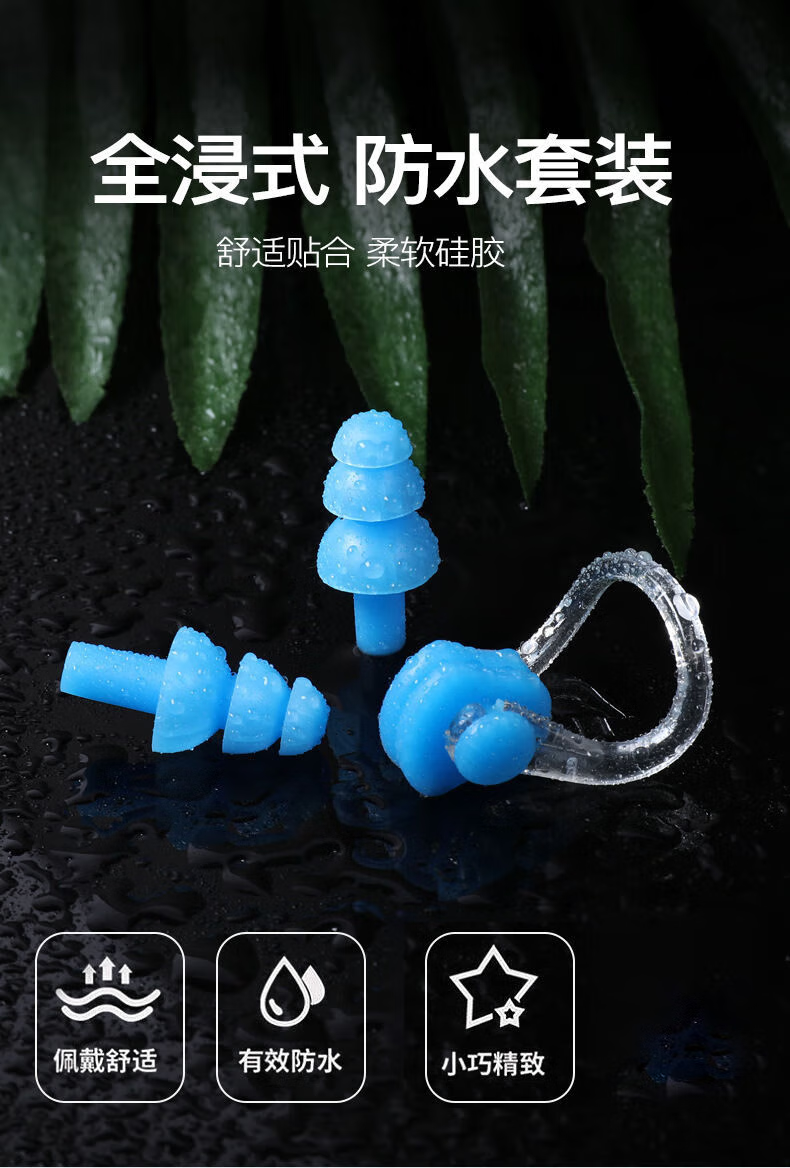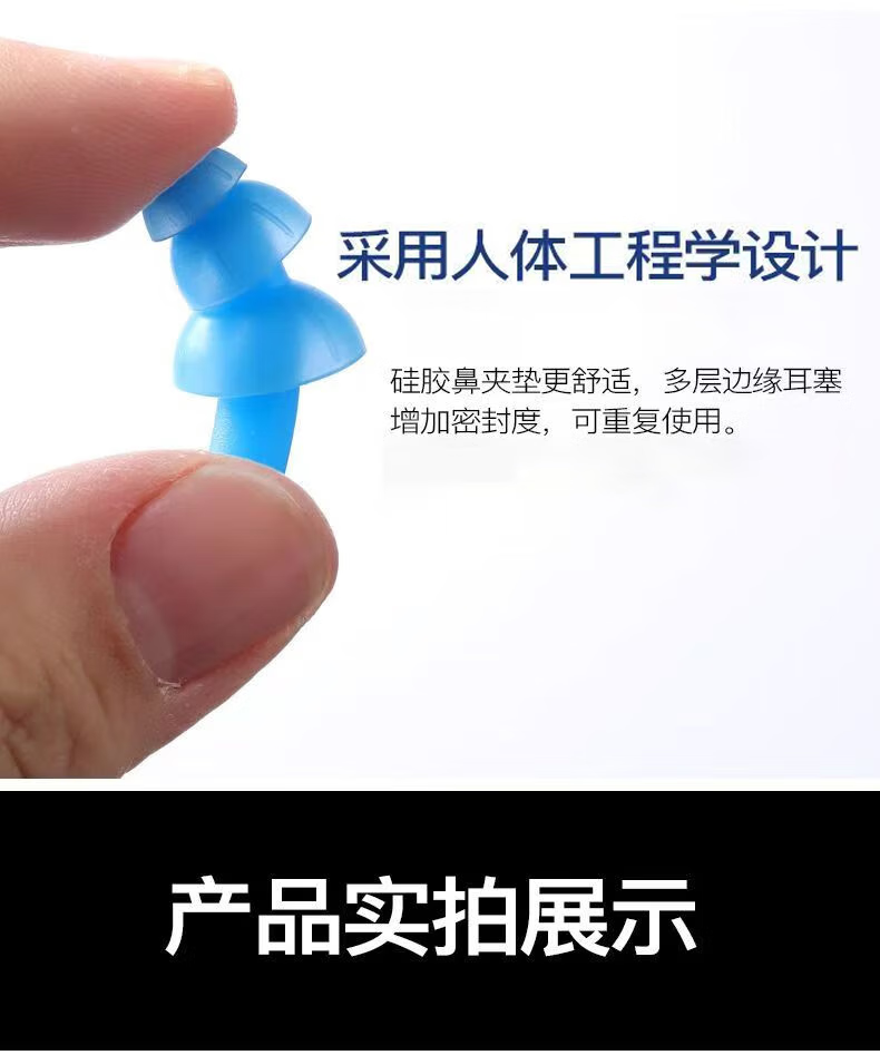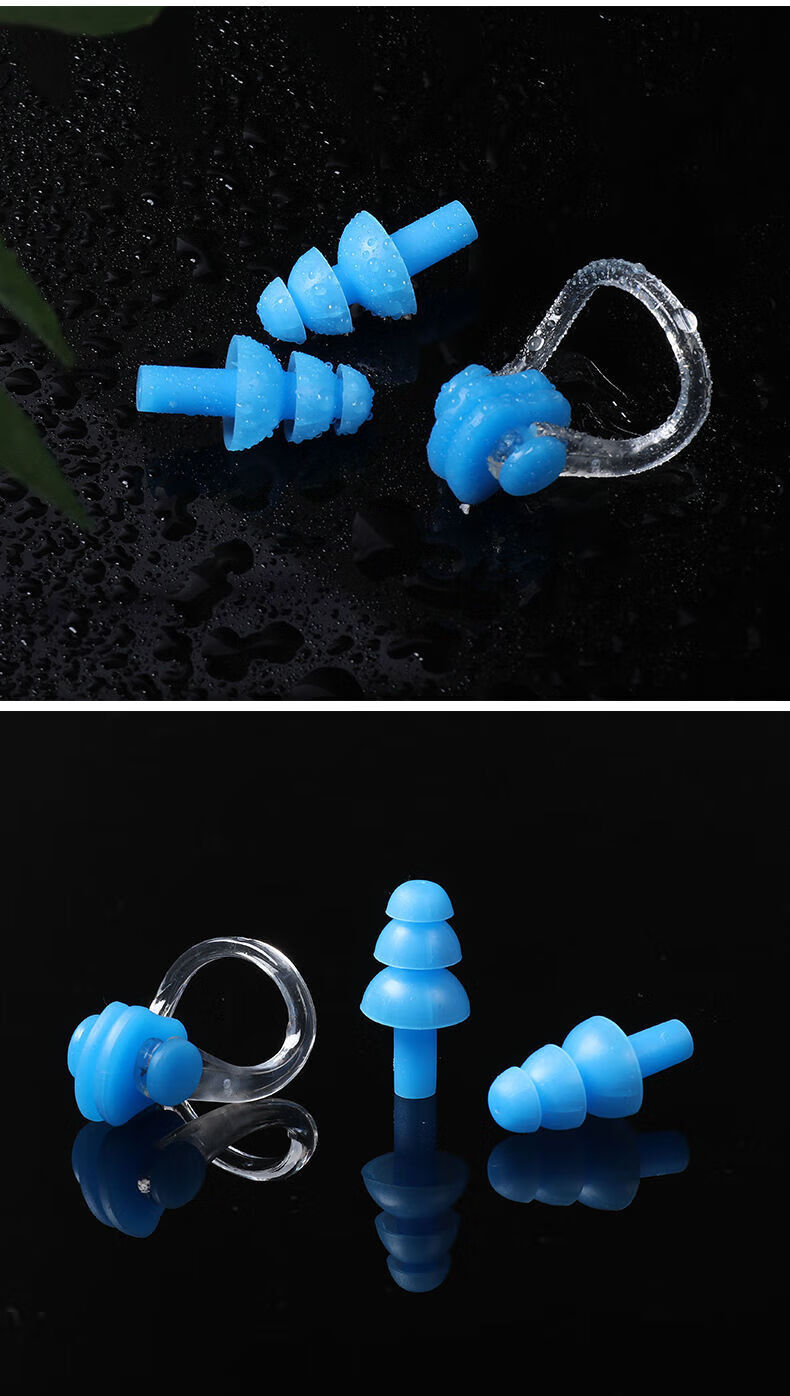 First idea of swimming equipment waterproof earplugs, anti-choking nose plugs, anti-slip nose clip swimming set, silicone waterproof earplugs, nose plugs, boxed blue, nose clip + earplugs