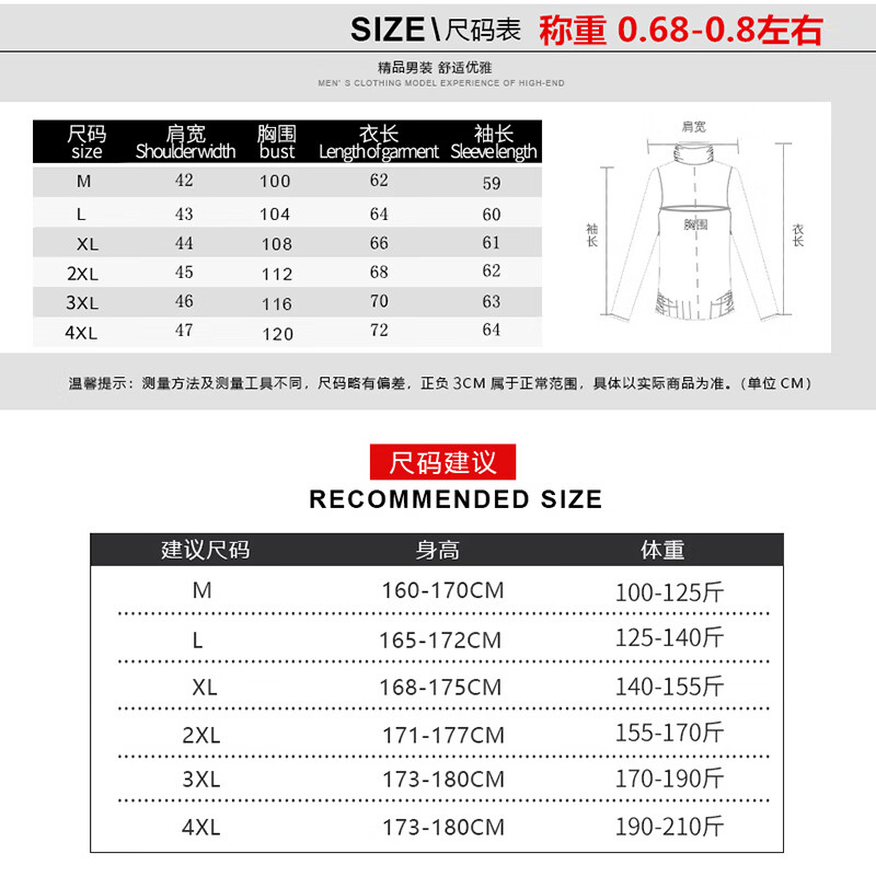 China (cm) 165 / 88-90 170 / 96-98 175 / 108-110 180 / 118-122 185 / 126-130