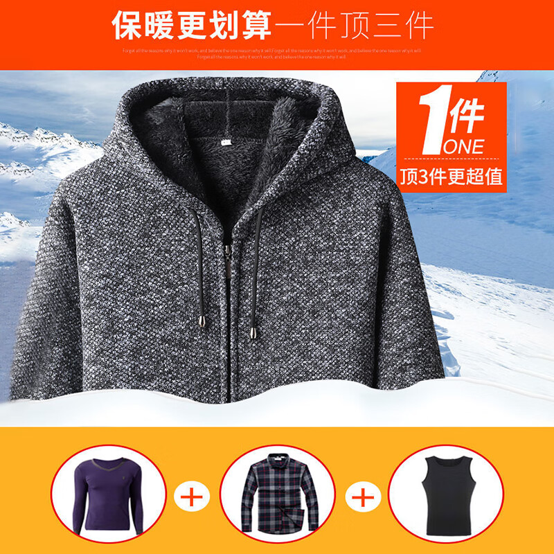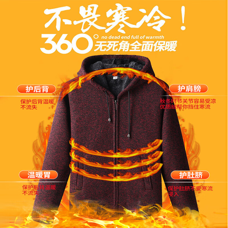 Warm and skin-friendly dad cardigan jacket men's loose middle-aged and elderly autumn and winter velvet thickened top for men brown M recommended 100-125 Jin Jin equals 0.5 kg