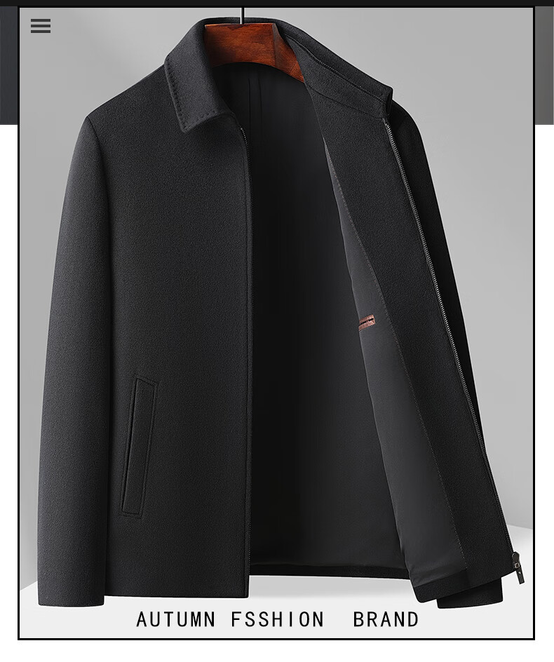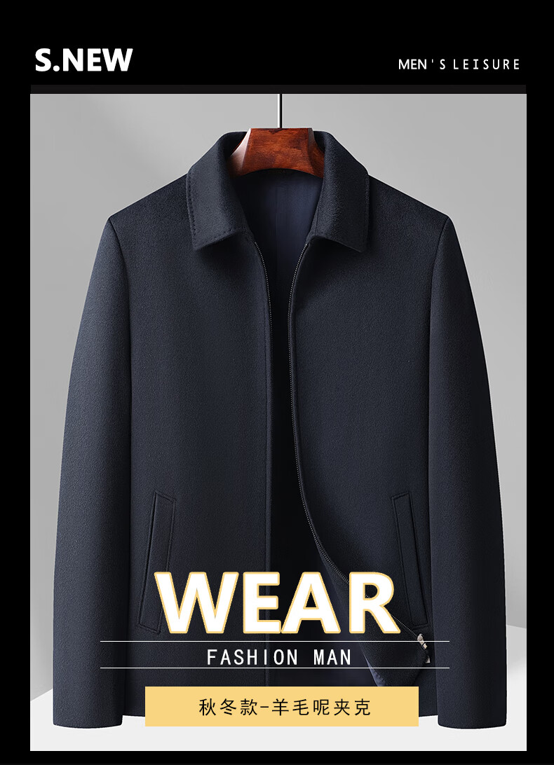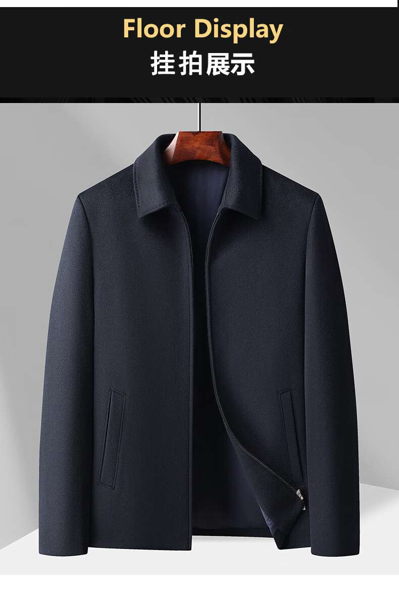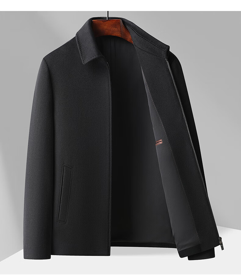 100 Pure Wool Coat Jacket Men's Autumn and Winter Lapel Business Casual Middle-aged Woolen Jacket Gray 2XL (160-175)