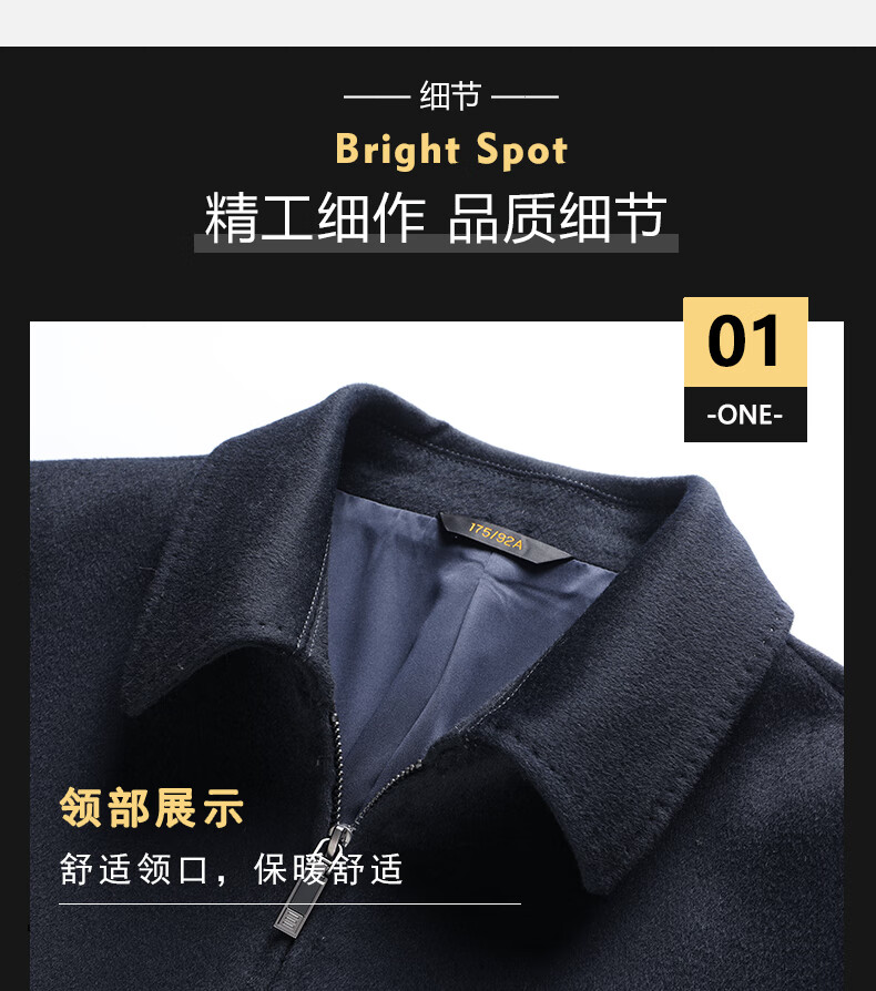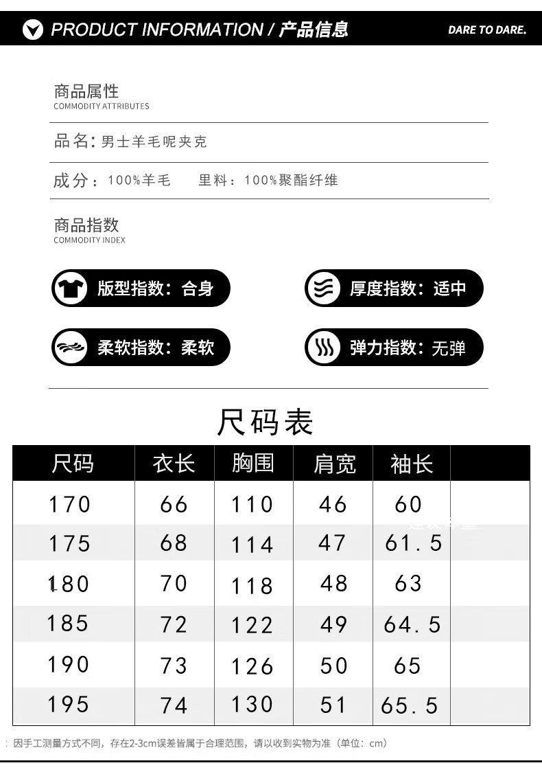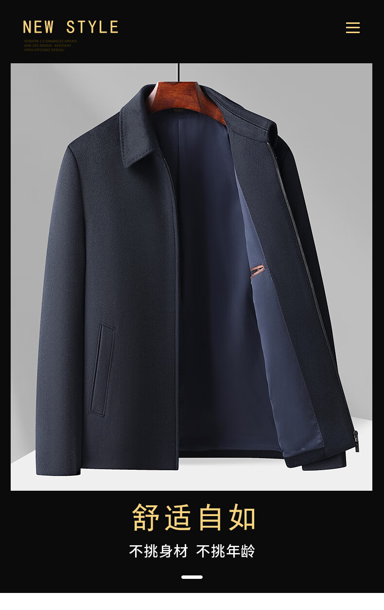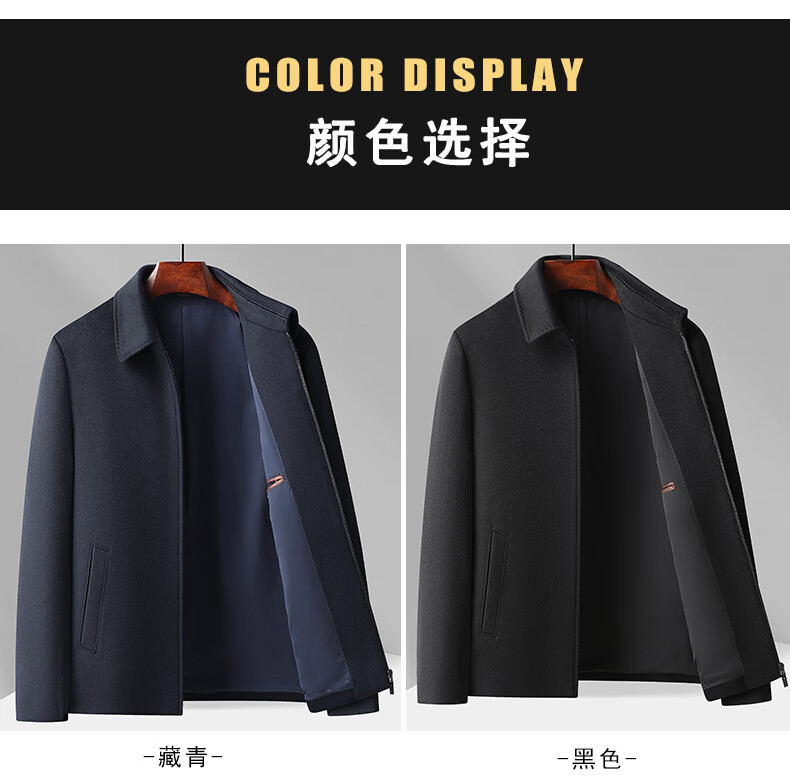 100 Pure Wool Coat Jacket Men's Autumn and Winter Lapel Business Casual Middle-aged Woolen Jacket Gray 2XL (160-175)
