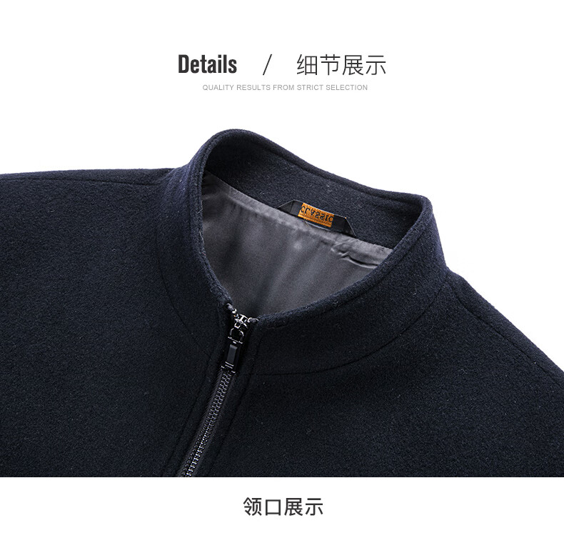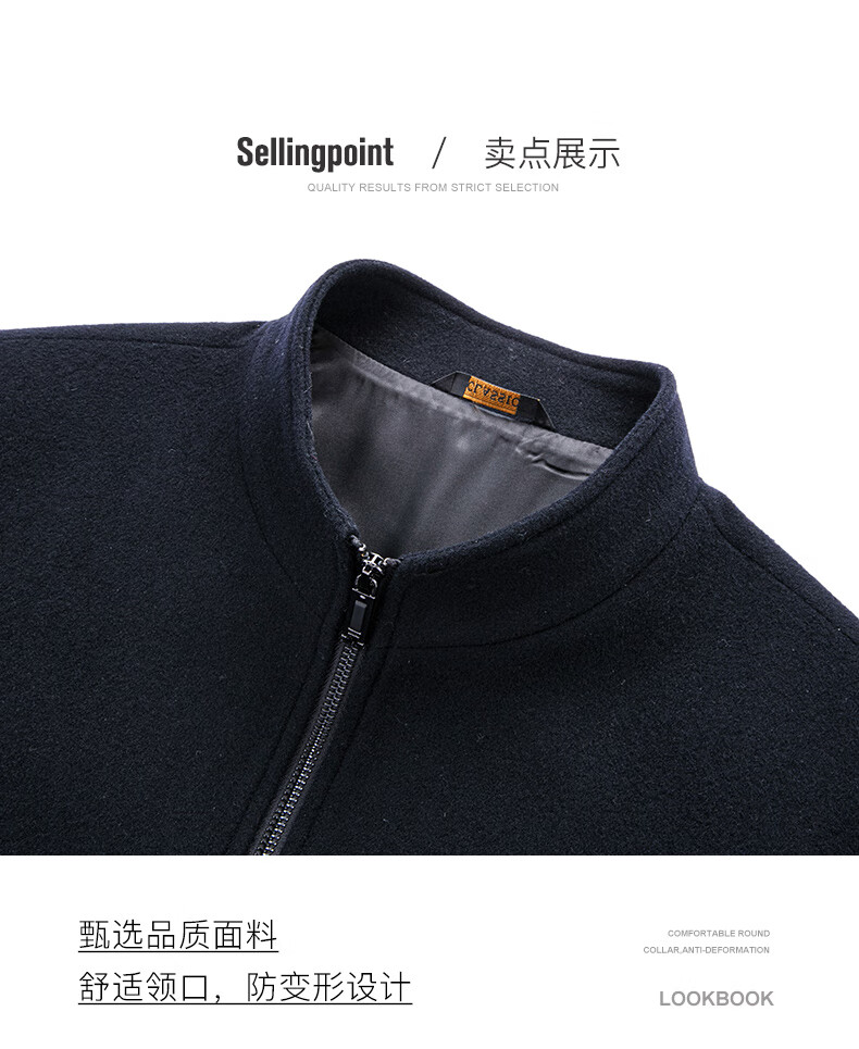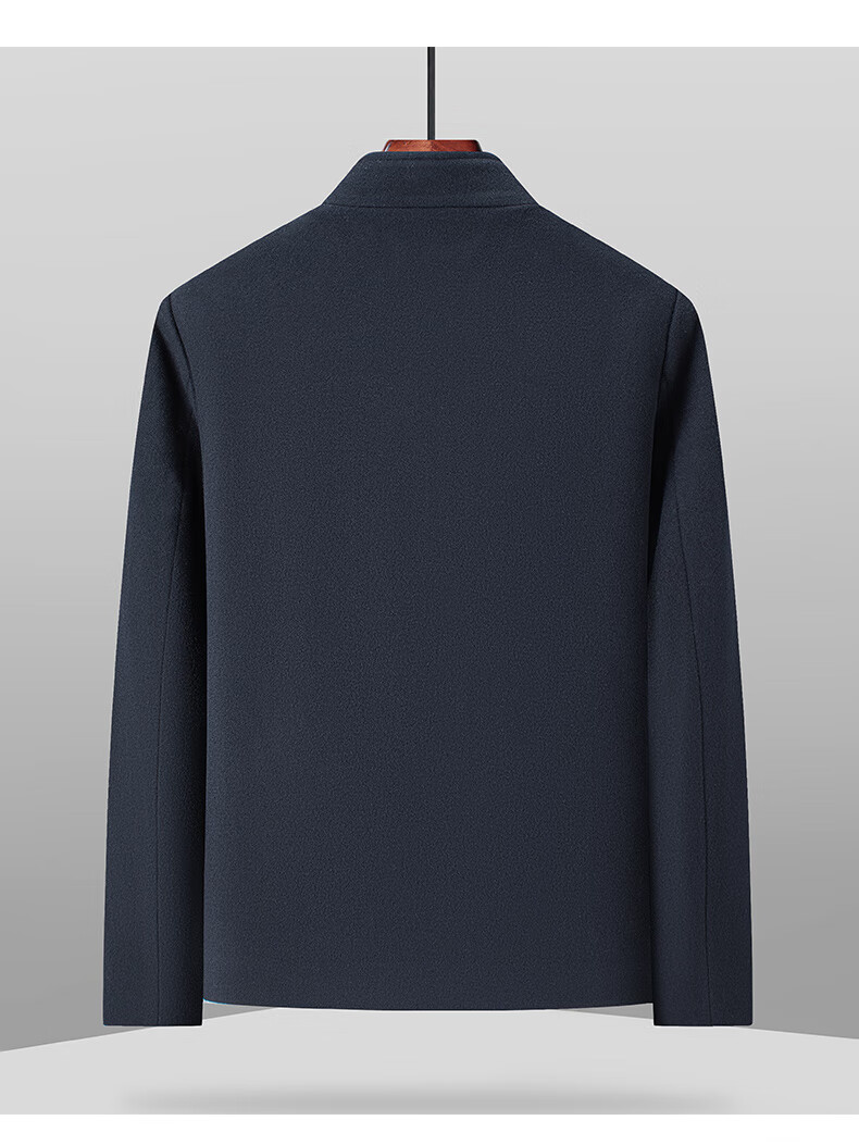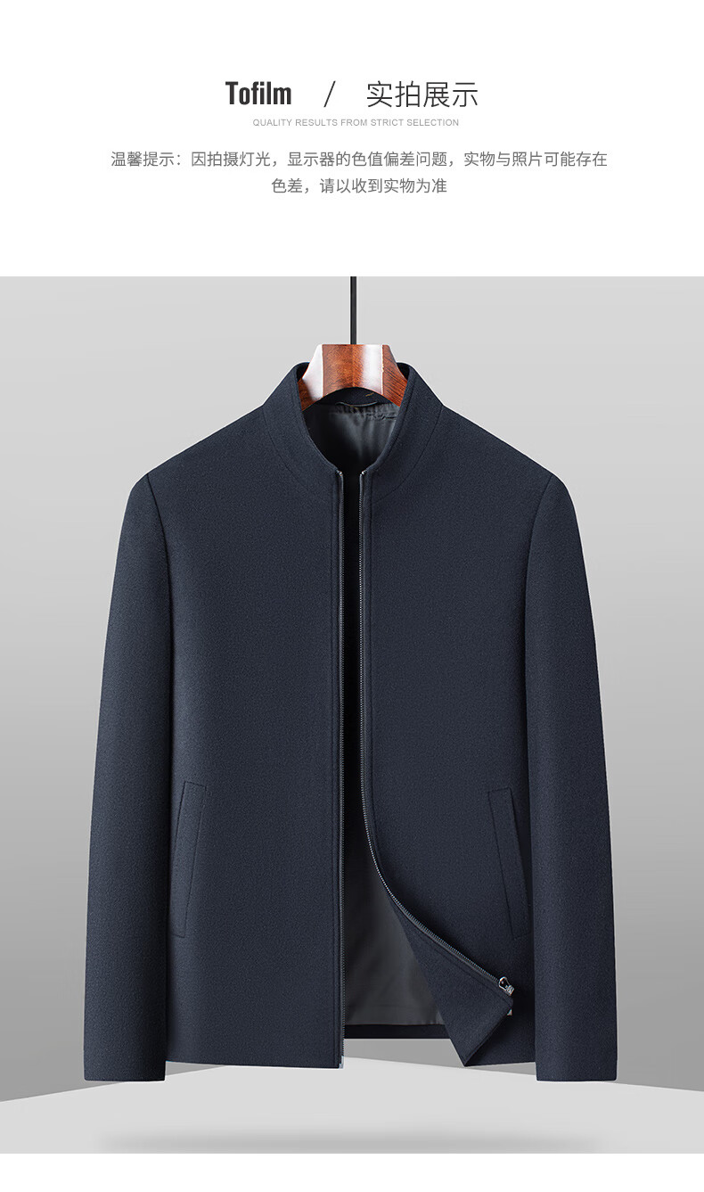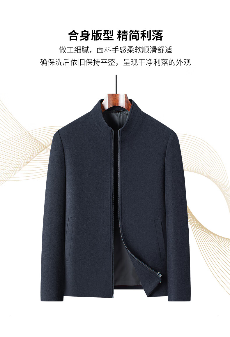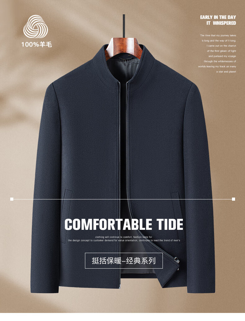 100 Pure Wool Coat Jacket Men's Autumn and Winter Stand Collar Business Casual Middle-aged Woolen Jacket Navy Blue XL (140-160)