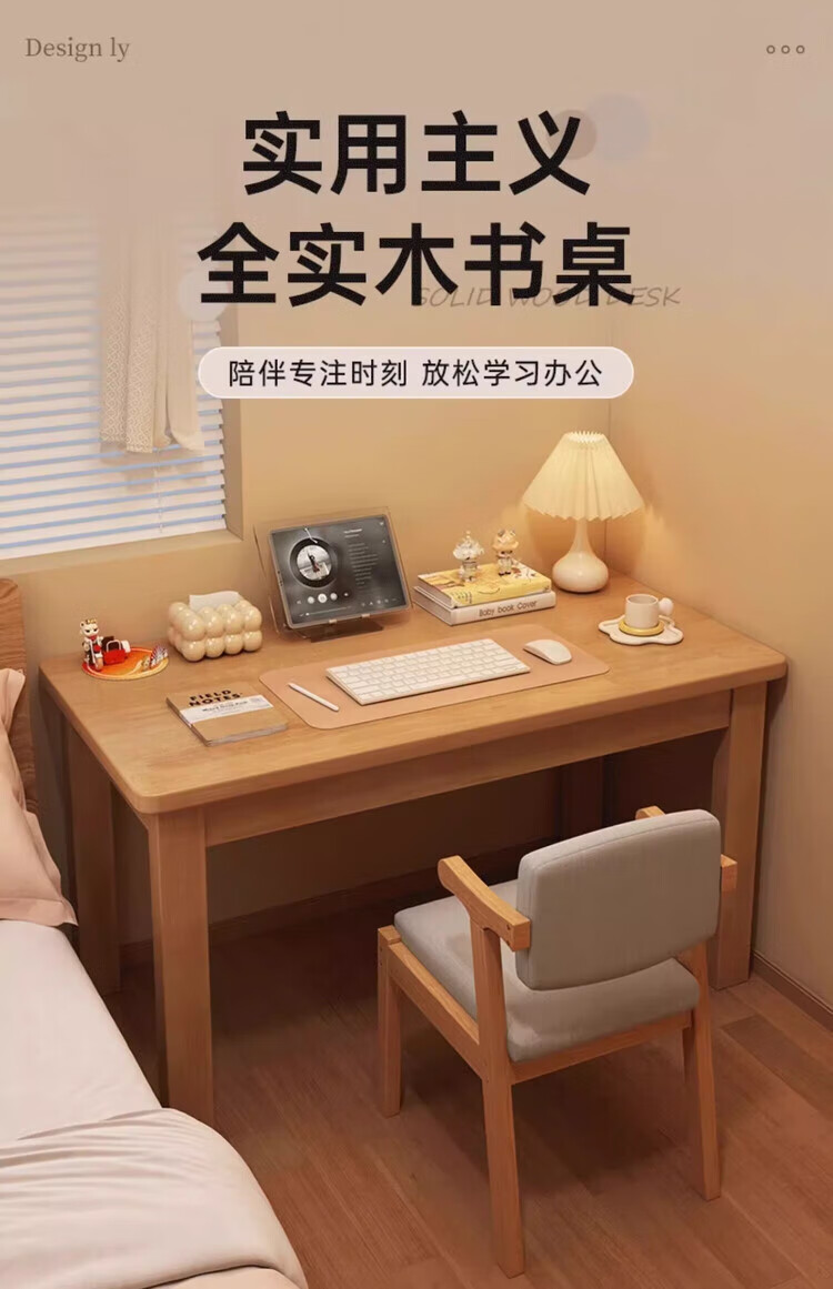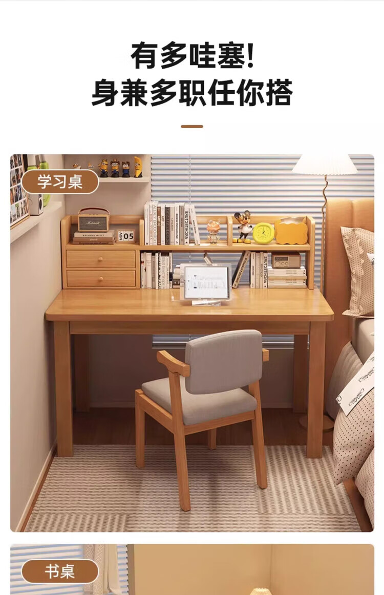 Solid wood desk bookshelf integrated student home study desk bedroom computer desk study desk office table solid wood color 120*60*75