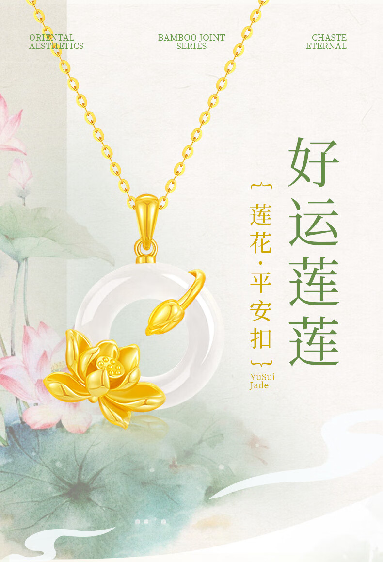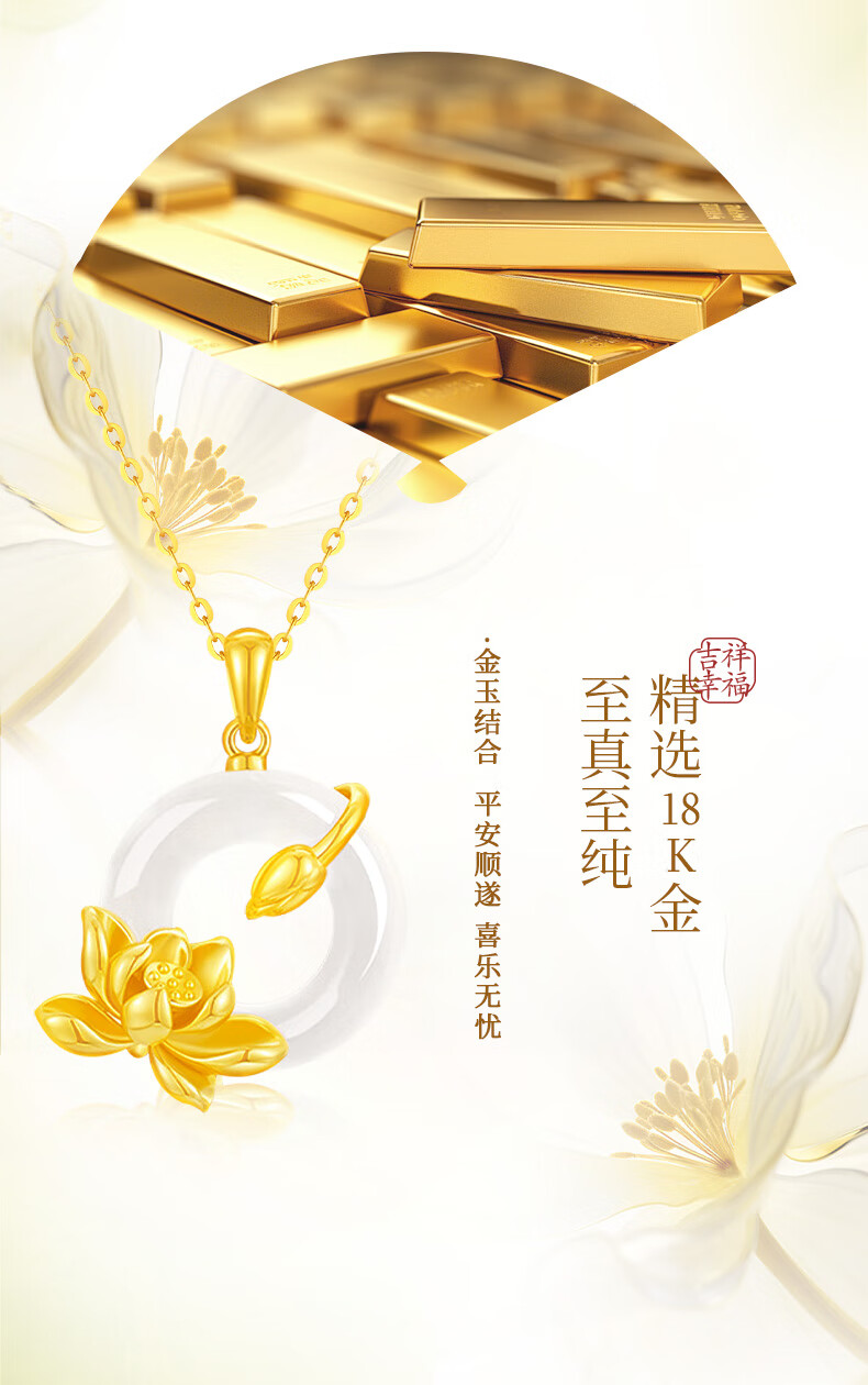 CHINA GOLD 18k gold necklace female lotus chalcedony safety buckle pendant birthday gift for girlfriend and wife 18K lotus set chain souvenir