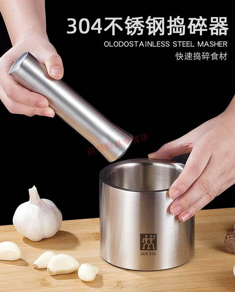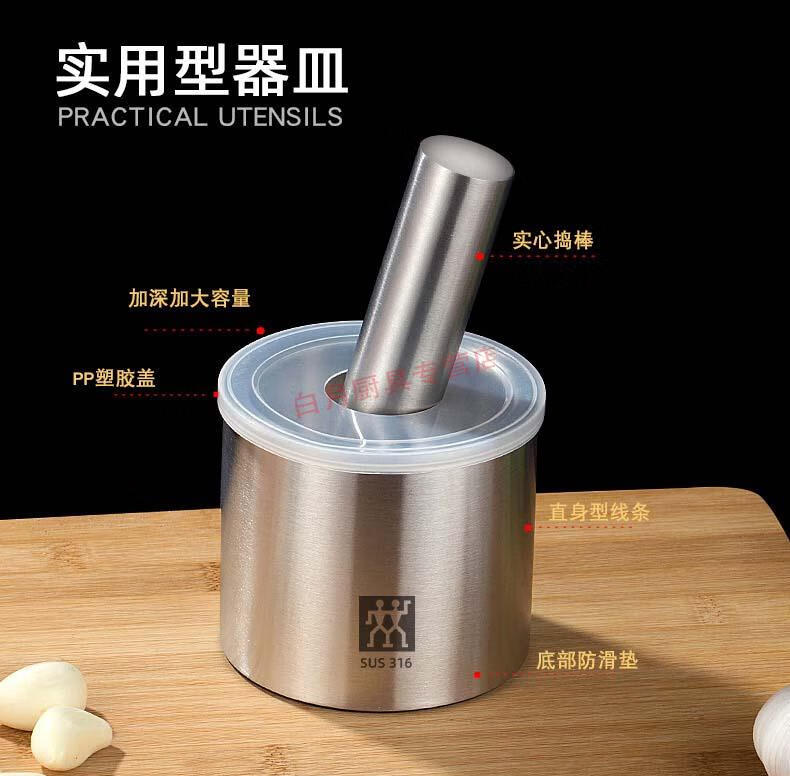 Zwilling German household 316 stainless steel solid garlic mortar garlic mashing bowl garlic mashing cup manual garlic press household tools 304 stainless steel mashing bowl