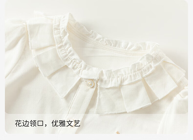 David Bella Aulet sells children's white shirt autumn clothing for girls pure cotton casual lace embroidered shirt top white ready stock 120 cm (recommended height 110-120cm)