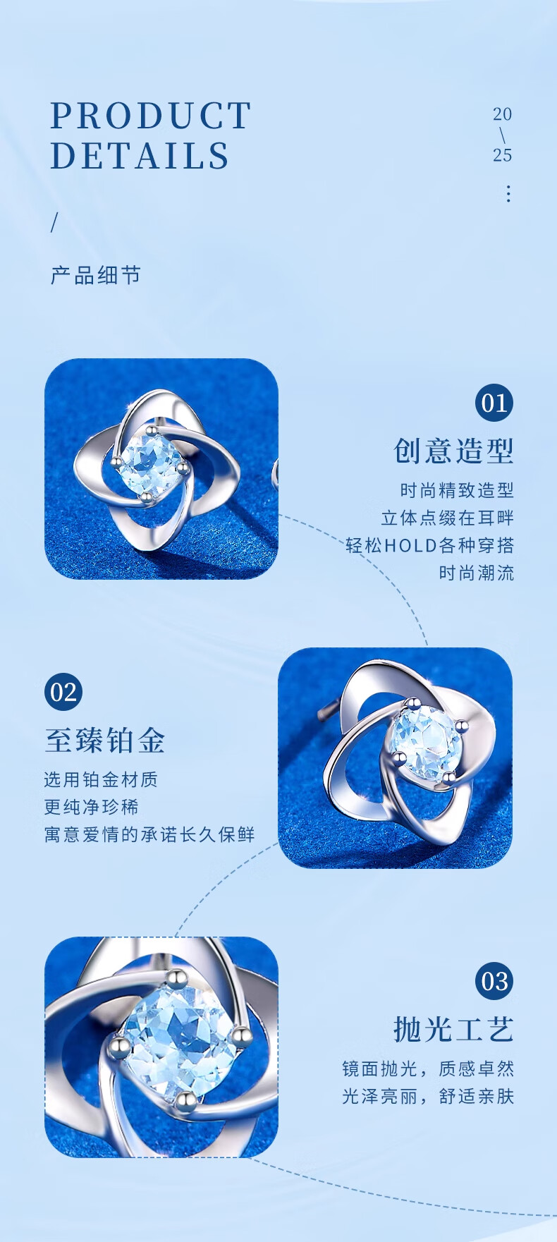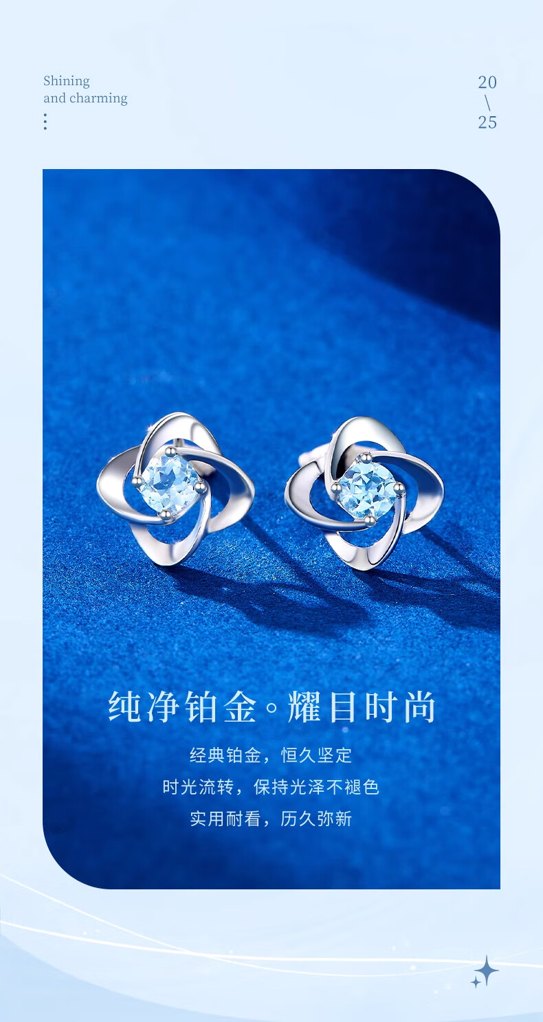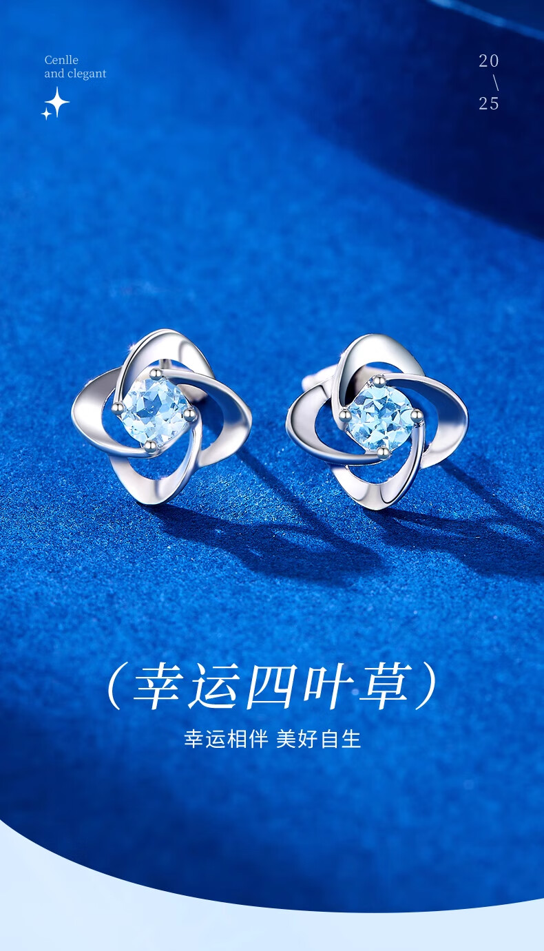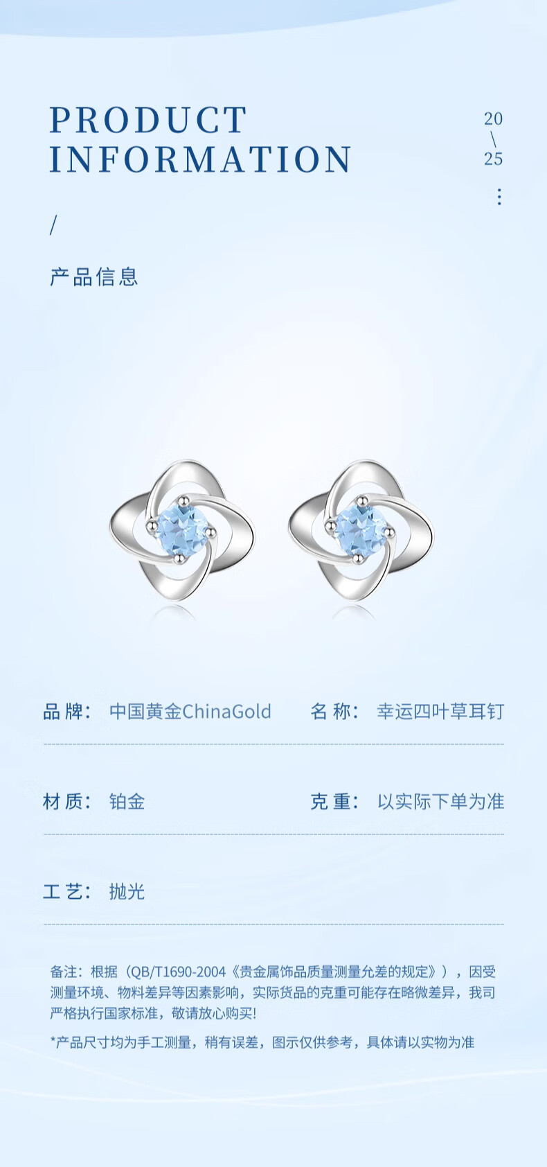 China Gold (CHINA GOLD) PT950 platinum four-leaf clover earrings for women, light luxury high-end earrings, Valentine's Day birthday gift for girlfriend and wife, platinum lucky four-leaf clover earrings, about 1.8g, one pair + brand gift box