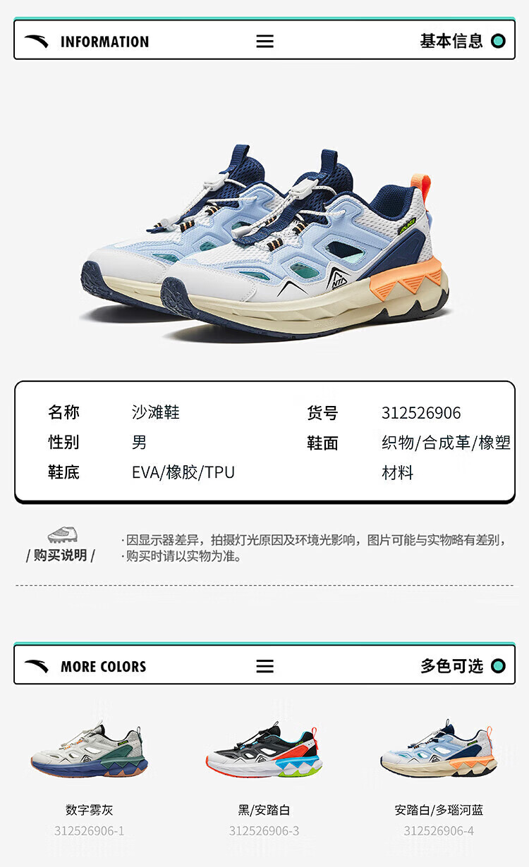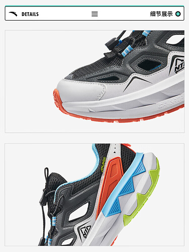ANTA (ANTA) children's sandals, boys' shoes, new summer off-road frame shoes, outdoor sports shoes, beach shoes, ANTA white/Danube blue-4 40, inner length 25cm