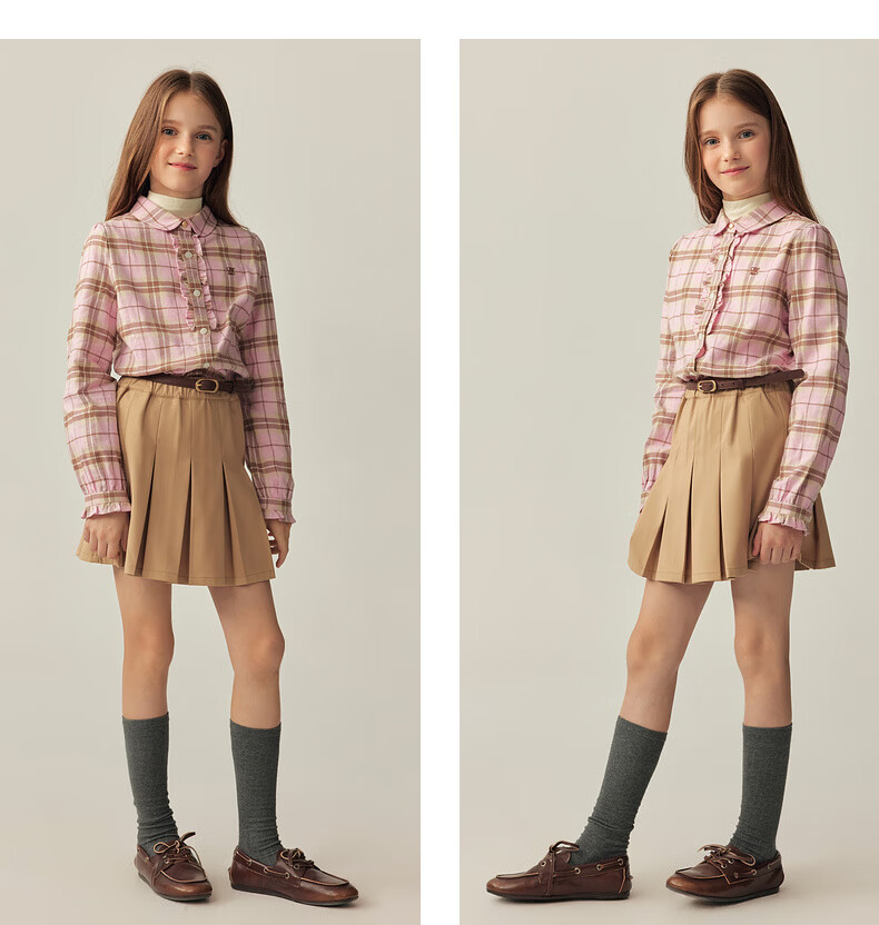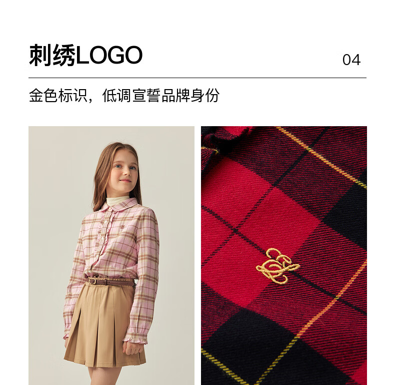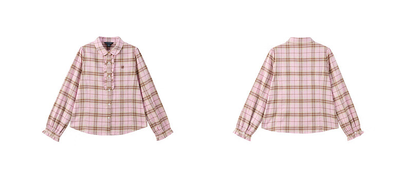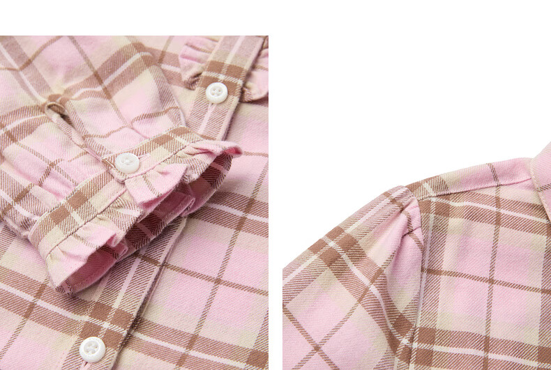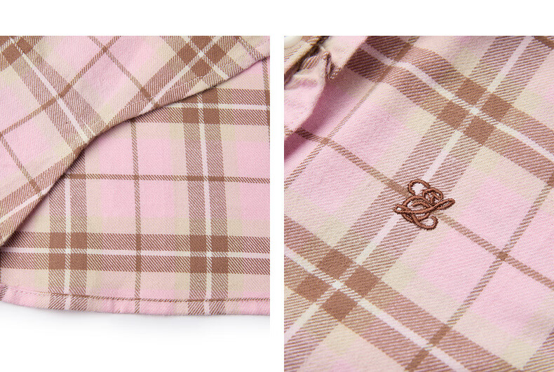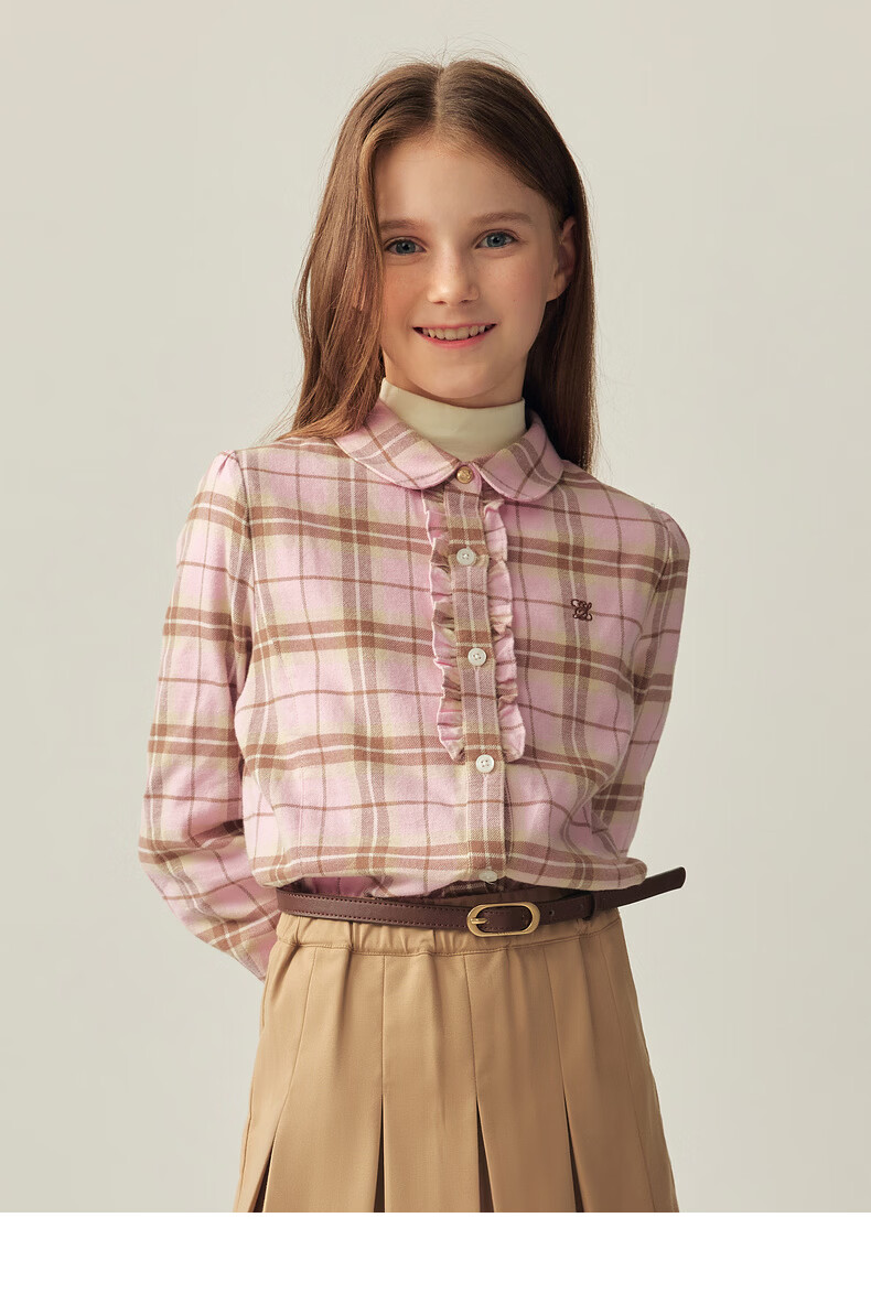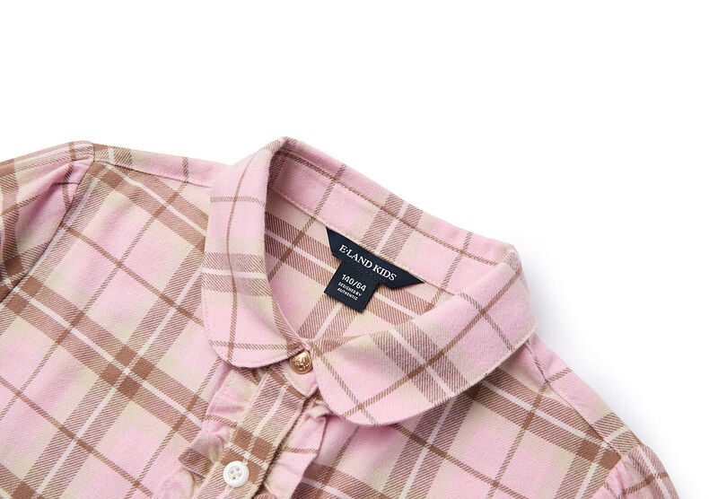 E LAND KIDS 100% cotton children's clothing girls plaid shirt 2025 autumn new product Pink/25 140