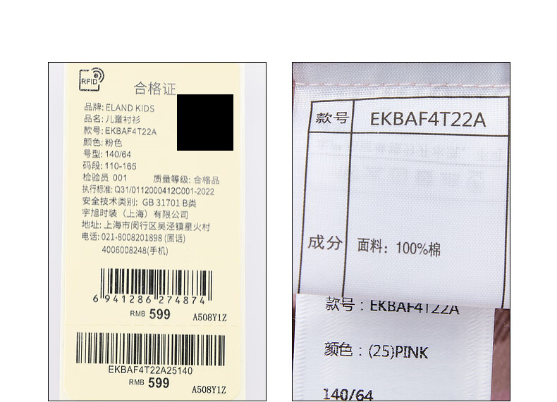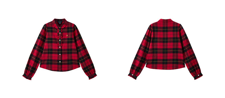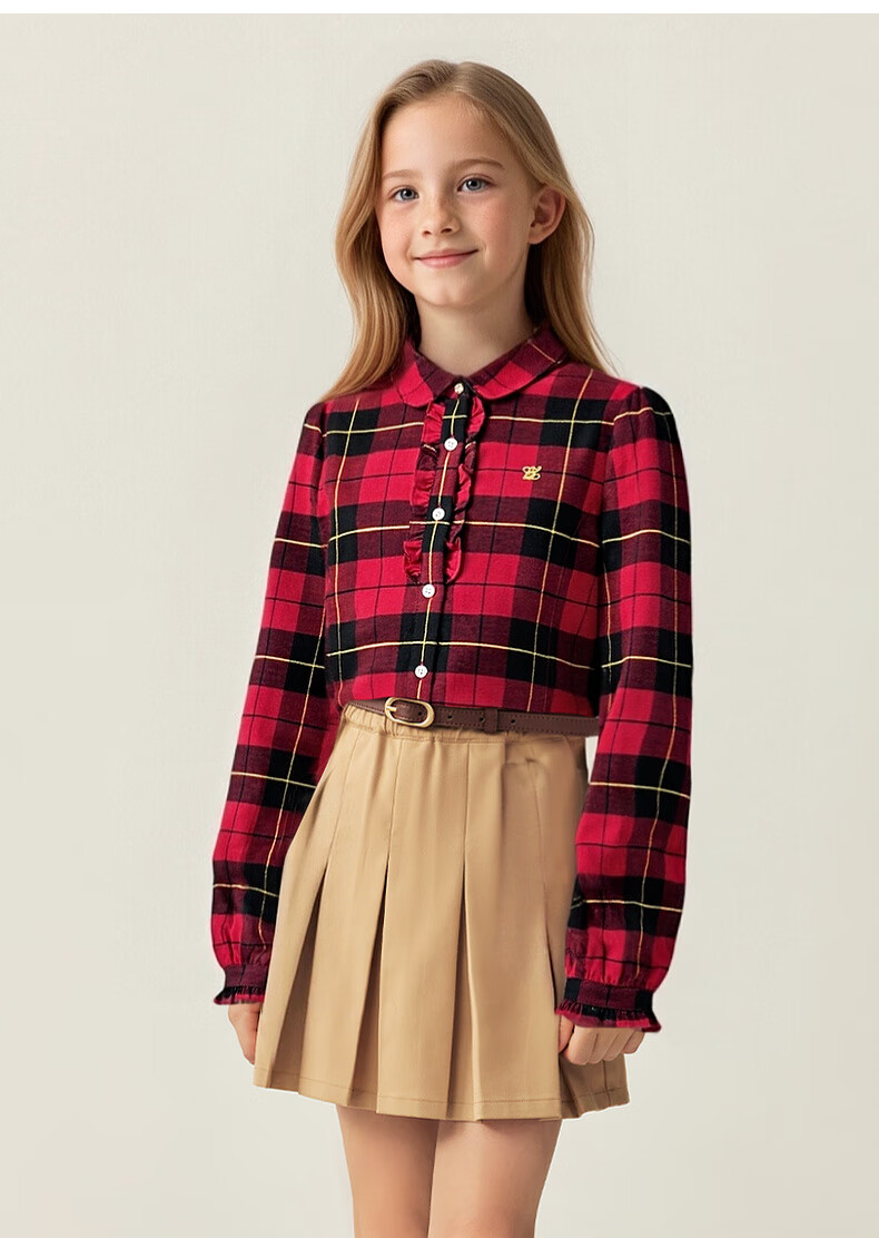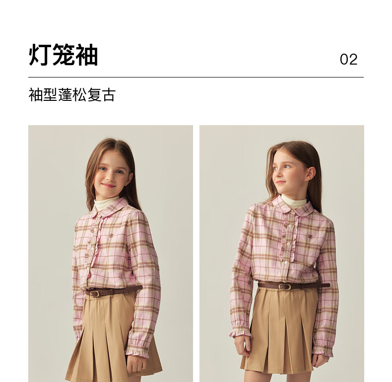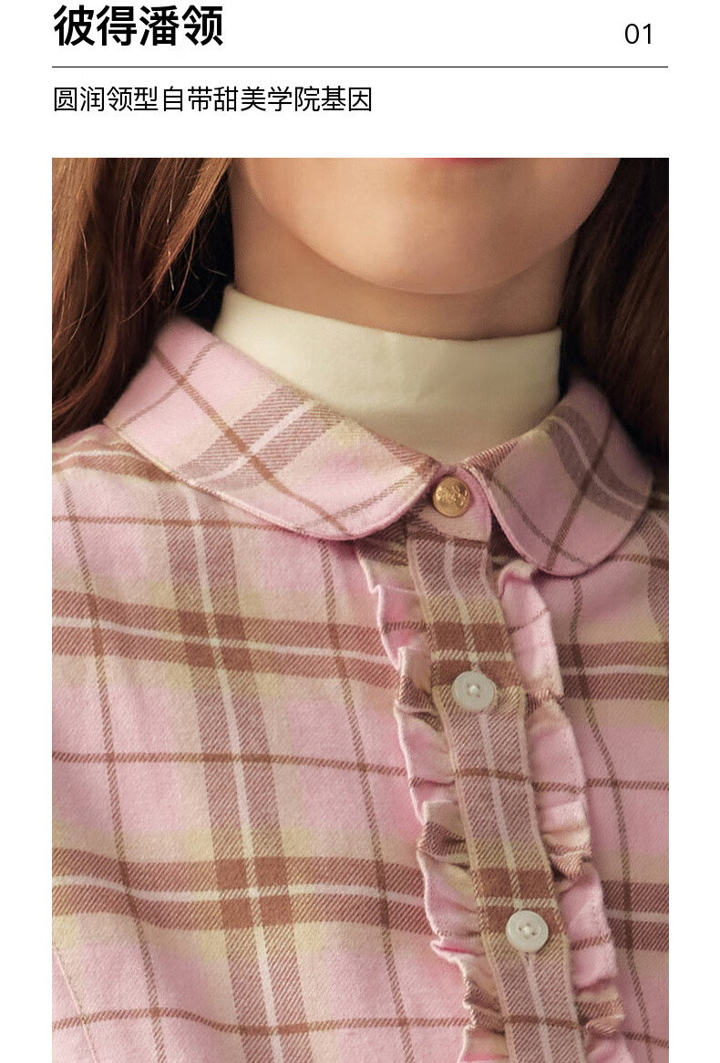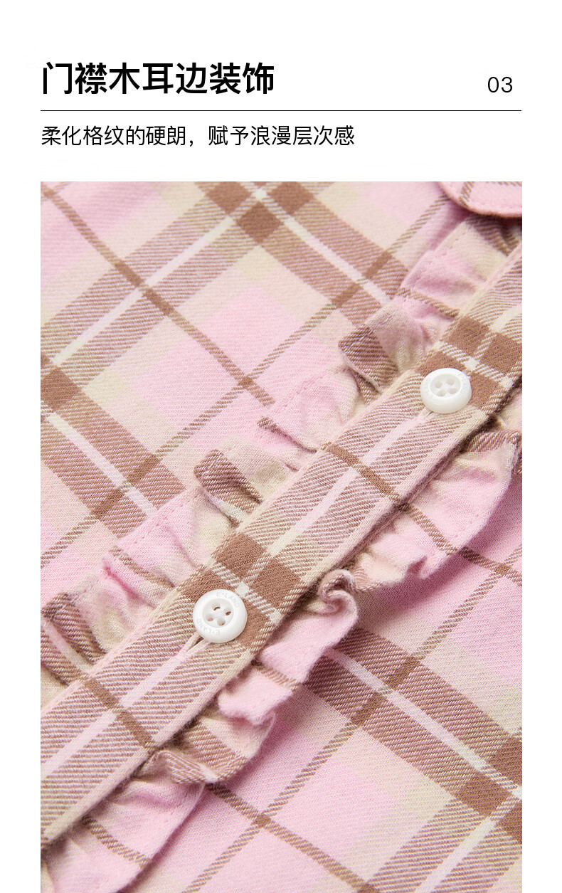 E LAND KIDS 100% cotton children's clothing girls plaid shirt 2025 autumn new product Pink/25 140