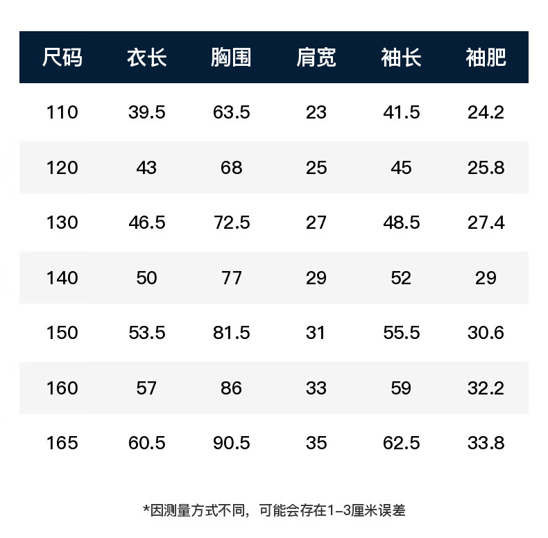China (cm) 165 / 88-90 170 / 96-98 175 / 108-110 180 / 118-122 185 / 126-130