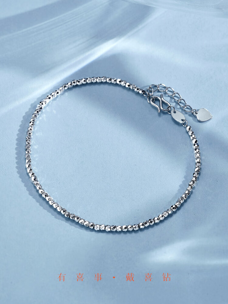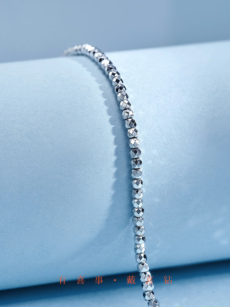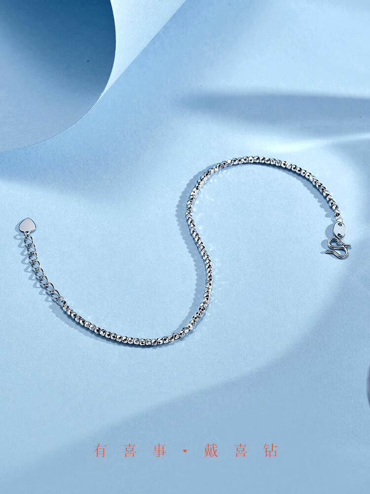 Hi Diamond pt950 Platinum Carved Laser Beads Small Broken Gold Bracelet for Girlfriend’s Birthday Gift for Mom, Platinum Approximately 4.14g