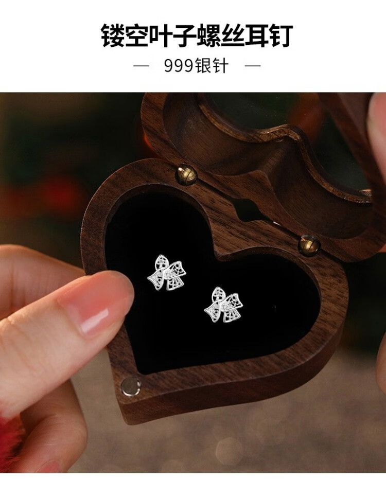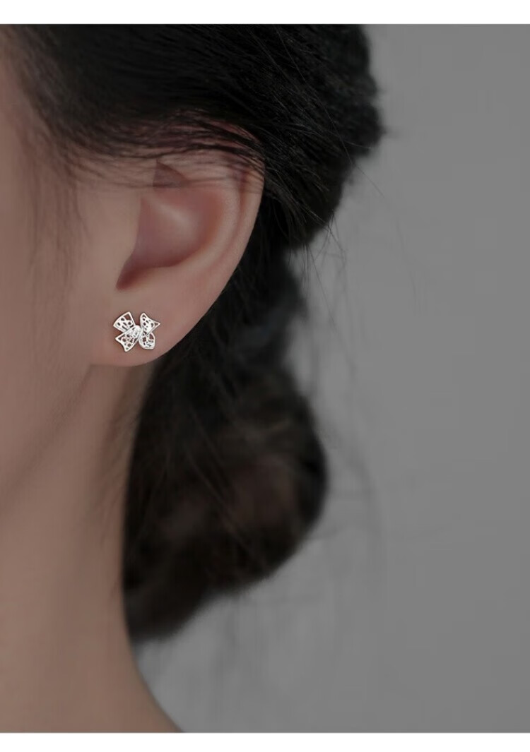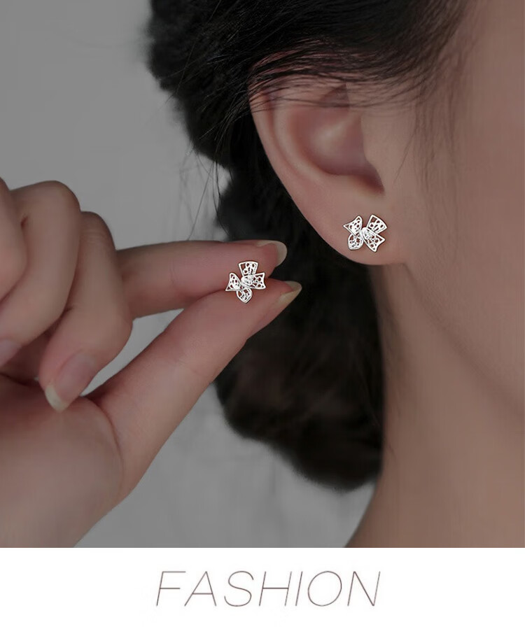 Bai Qixin Bow Earrings S999 Sterling Silver Silver Needle Hollow Earrings Women's Light Luxury Versatile High-end Fashion Ear Bone Nails Bow Earrings Pair