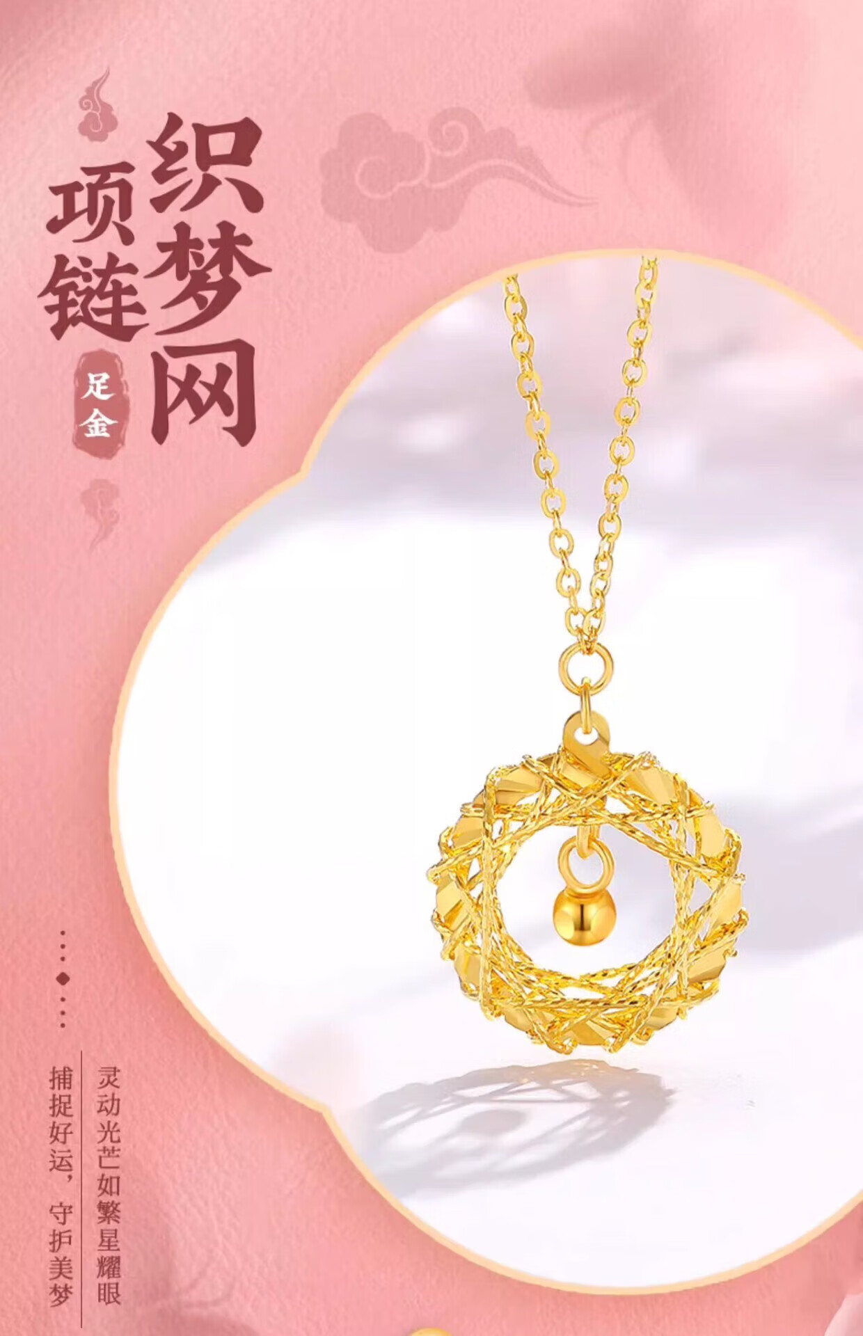 Chow Tai Fook Gold Pure Gold 999 Dreamweaver Pendant Pure Gold Clavicle Necklace Mobius Birthday Gift Gold Dreamweaver with 18k Titanium Chain