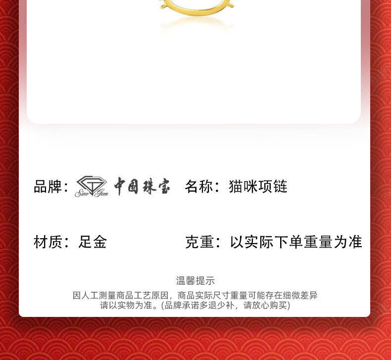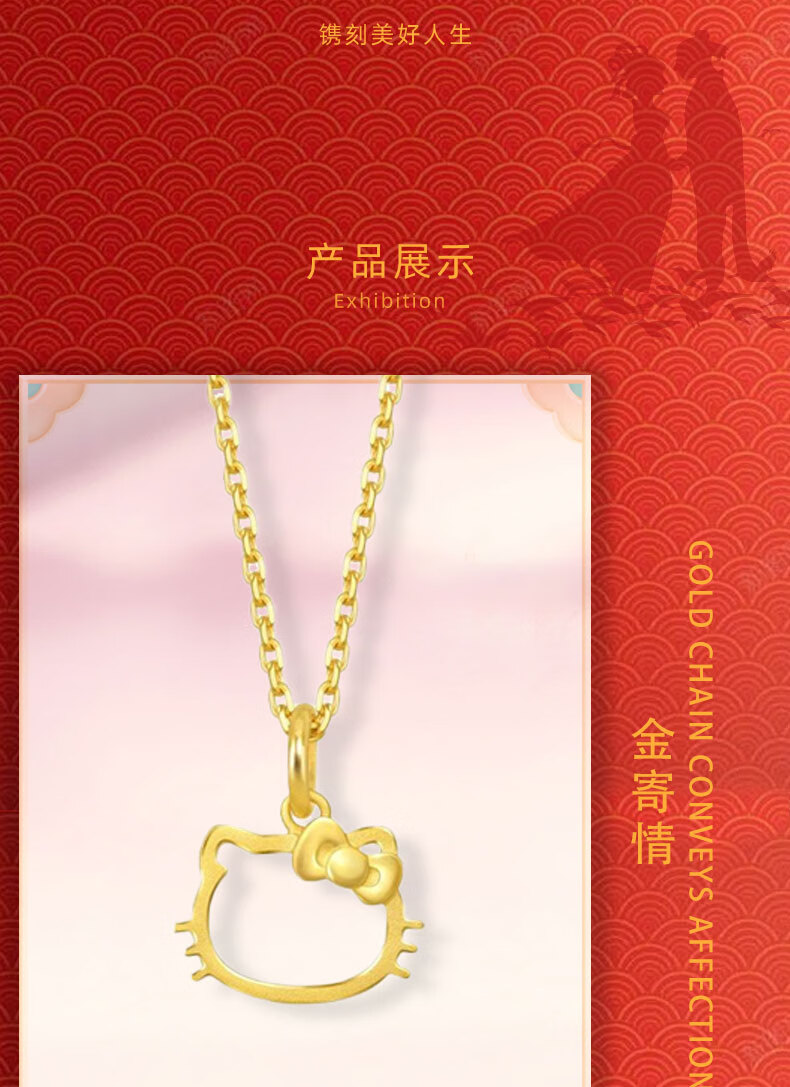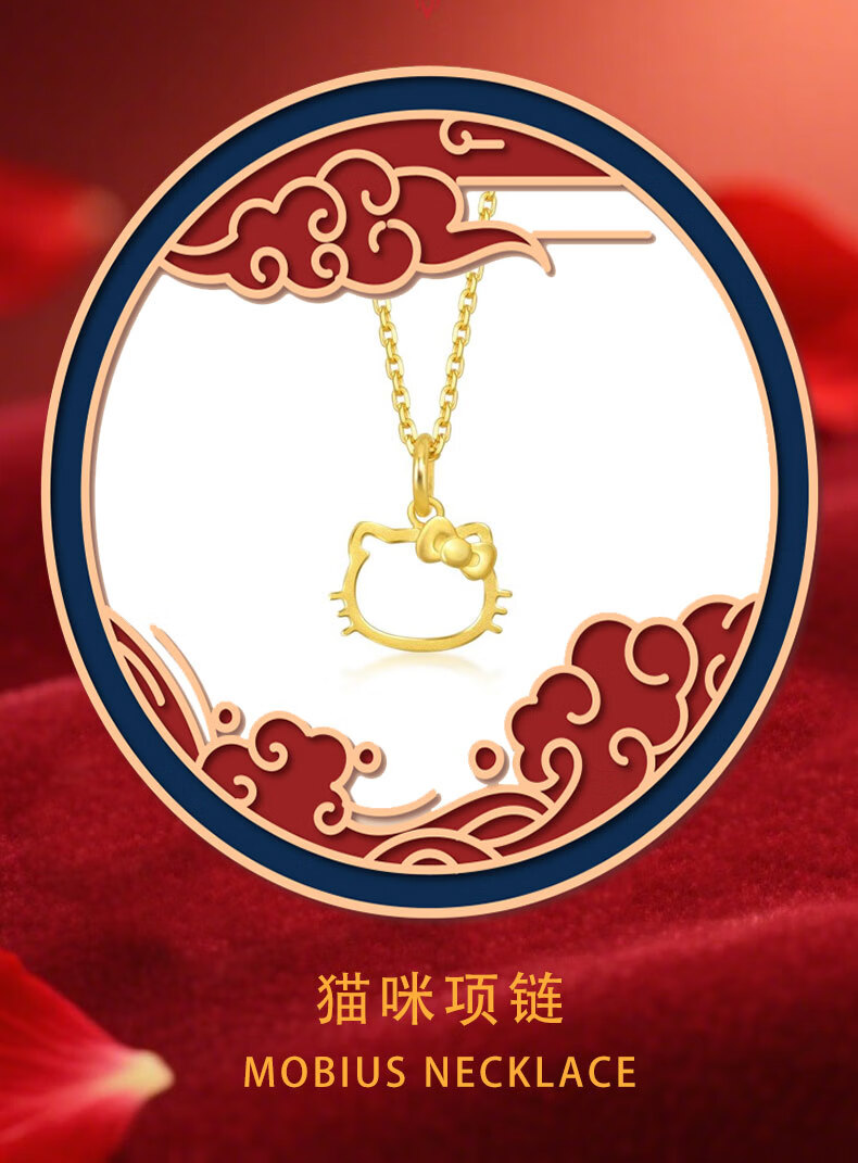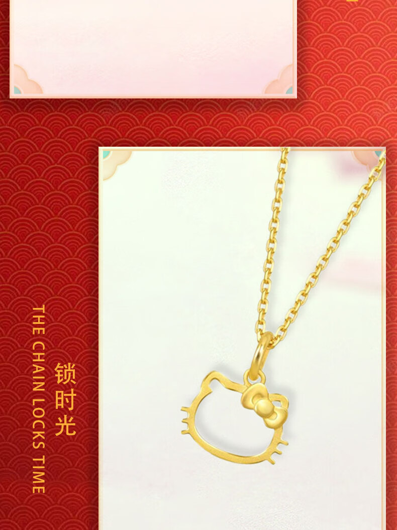 Chinese jewelry cute kitten gold necklace female KT cat pure gold pendant clavicle chain birthday double 11 gift for girlfriend and wife about 0.3g pure gold cat pendant + free silver chain