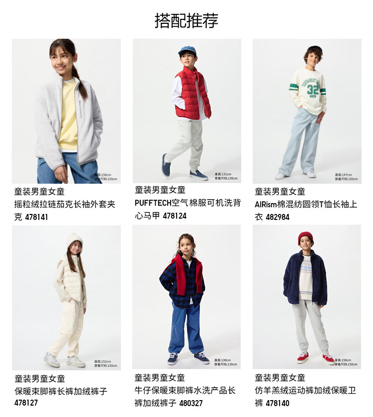 Uniqlo children's clothing boys and girls warm leggings trousers plus velvet pants 25 autumn and winter new style 480181 09 black 160
