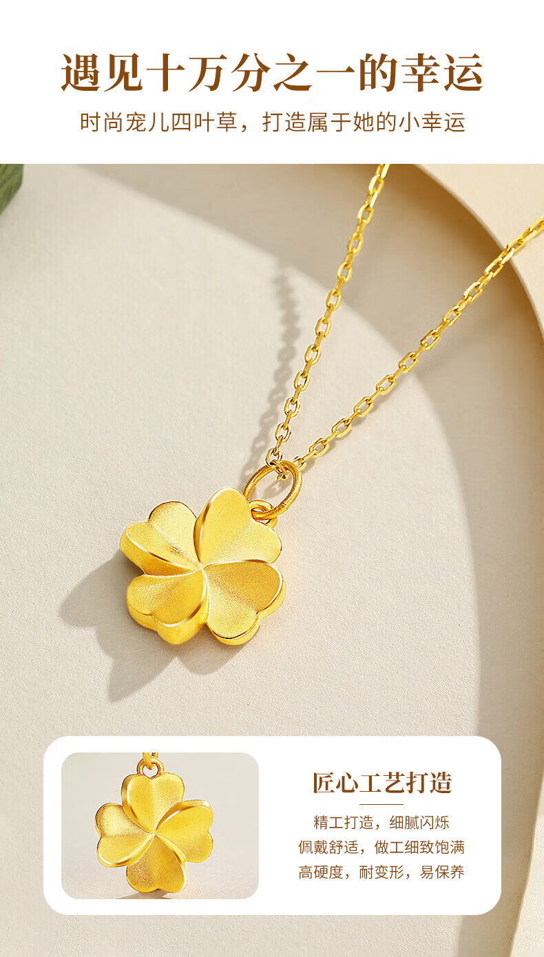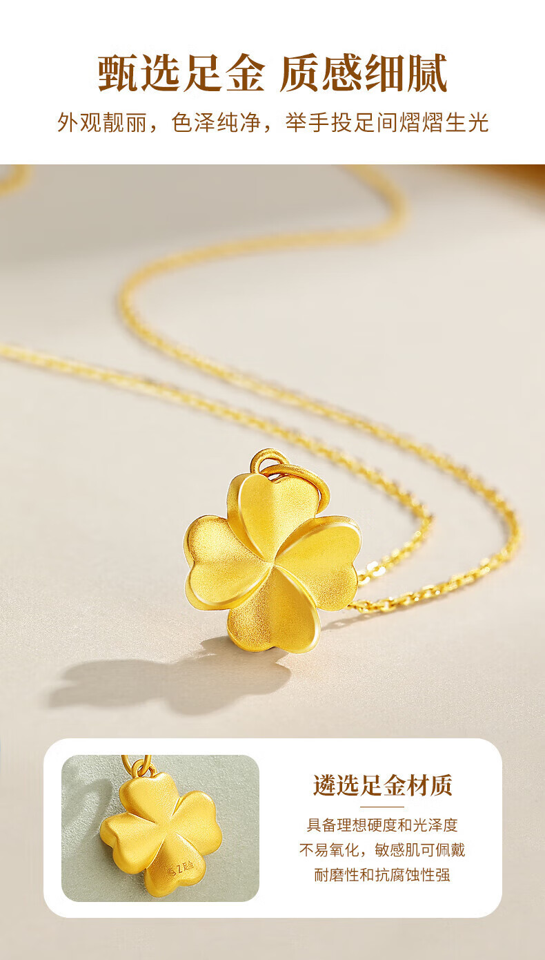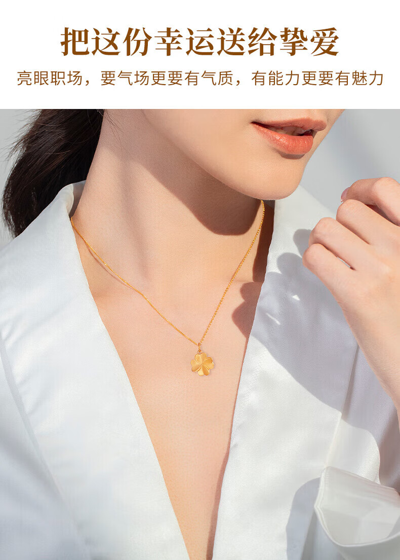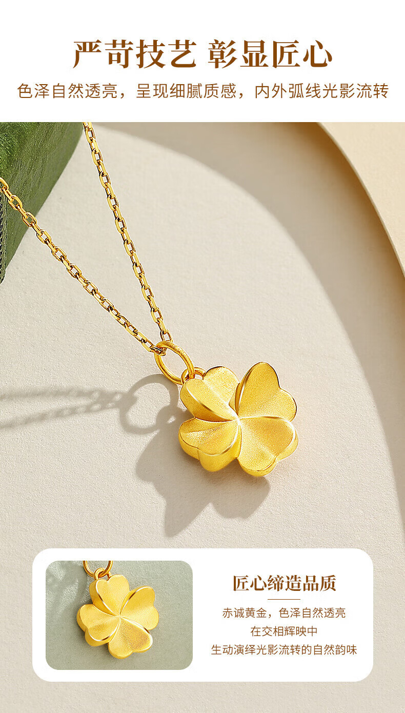 Chow Tai Fook Gold Necklace Women's Pure Gold Four Leaf Clover Pendant Birthday Valentine's Day Gift for Girlfriend Mom Wife Lover
